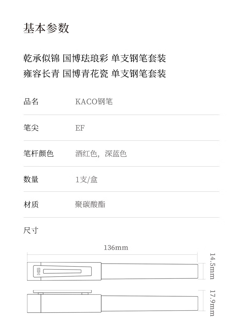 KACO SKY百锋塑料钢笔学生成人练字墨水笔 单支礼盒装(国博联名款)单位:个 珐琅彩