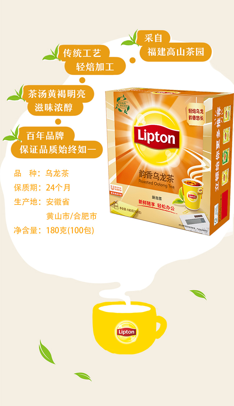 立顿 韵香乌龙茶S100 180g/盒 橙色