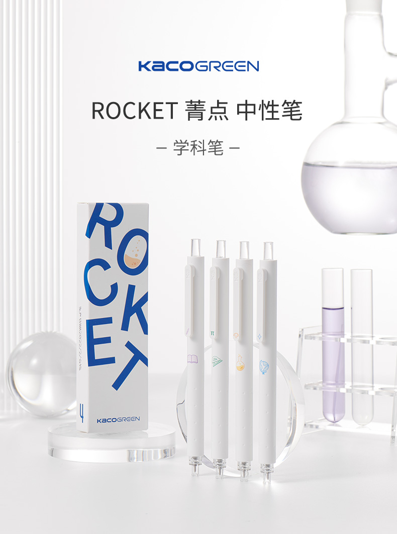 KACO菁点学科按动中性笔高颜值0.5mm黑笔学生刷题签字笔水笔4支/盒 K1028 黑色