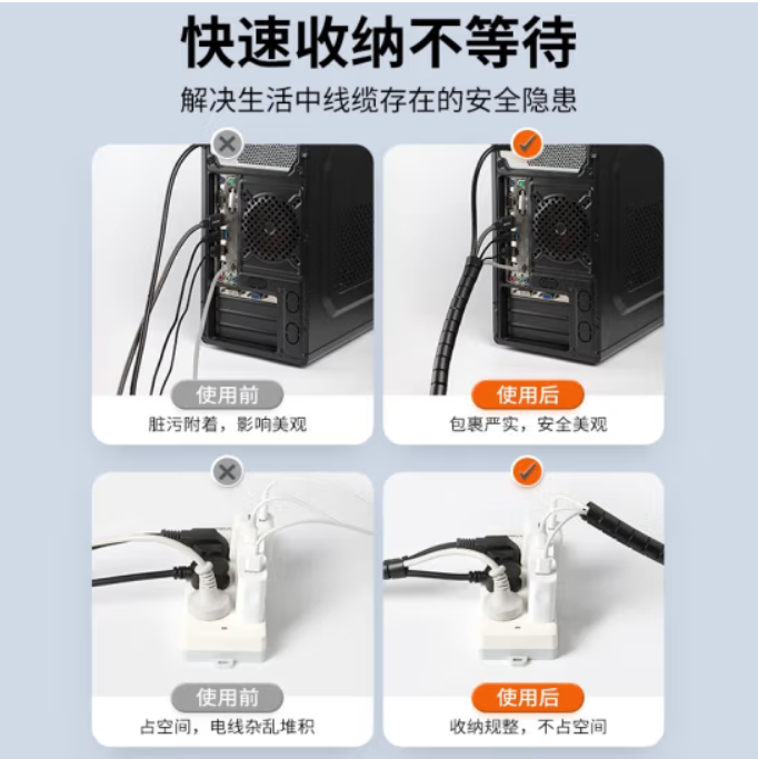 胜为包线管束线管 线束收纳束线管电脑汽车电源线缠绕整理保护套CBX2502G 单位:袋 曜石黑