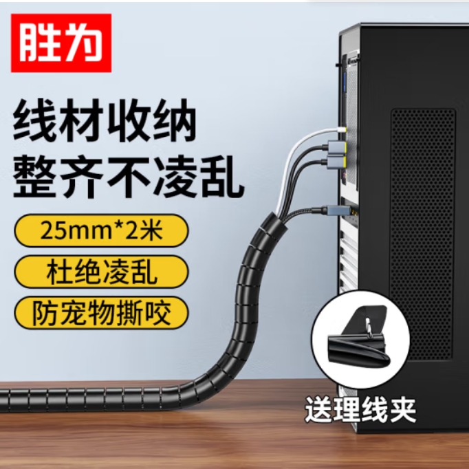 胜为包线管束线管 线束收纳束线管电脑汽车电源线缠绕整理保护套CBX1502G 单位:袋 曜石黑