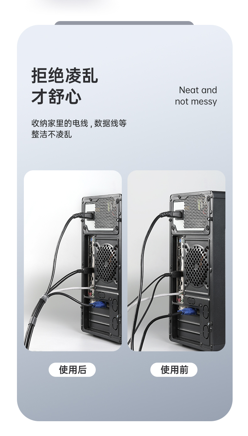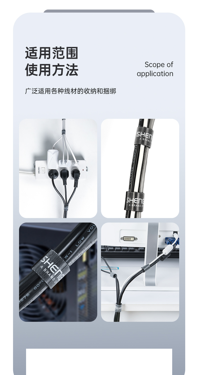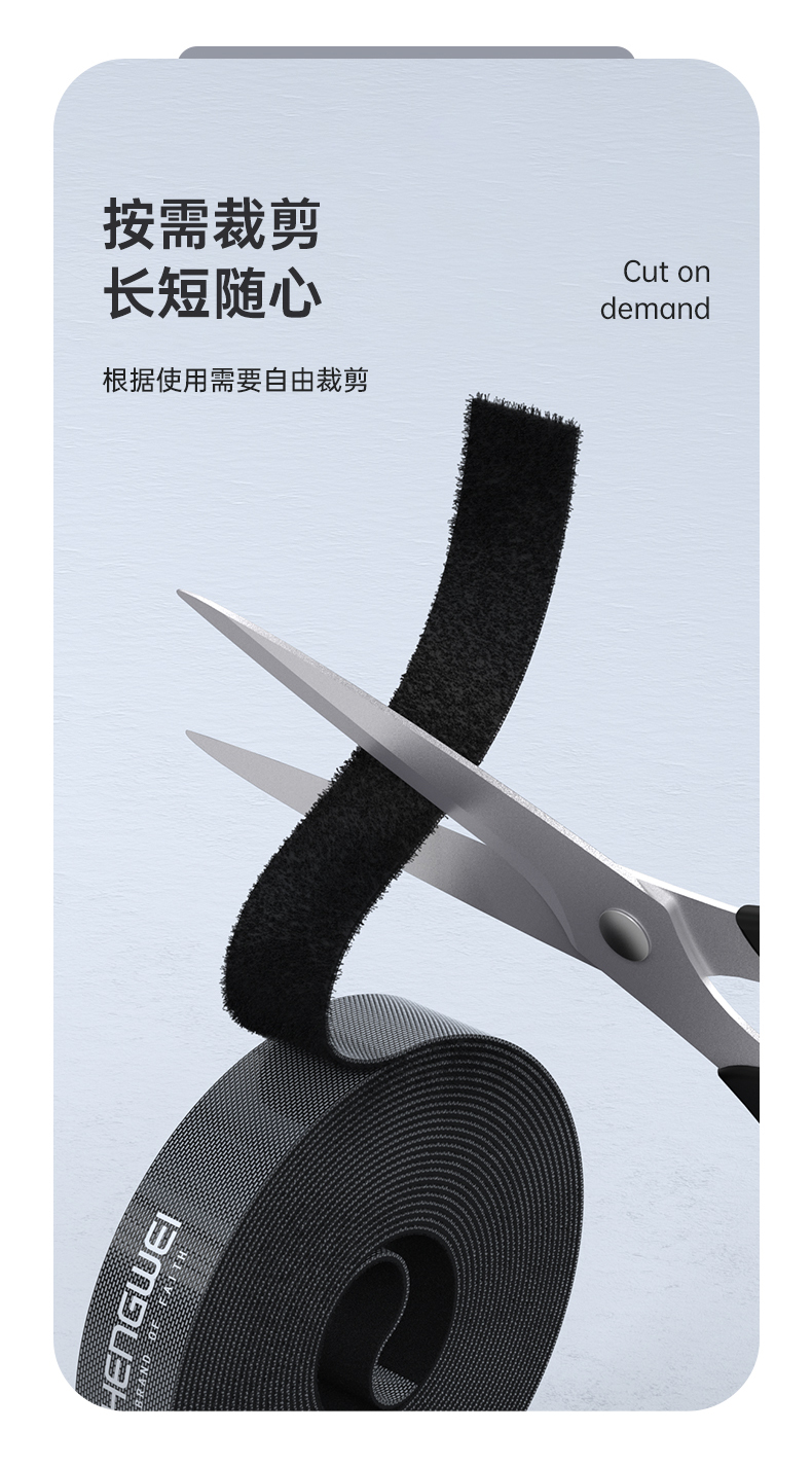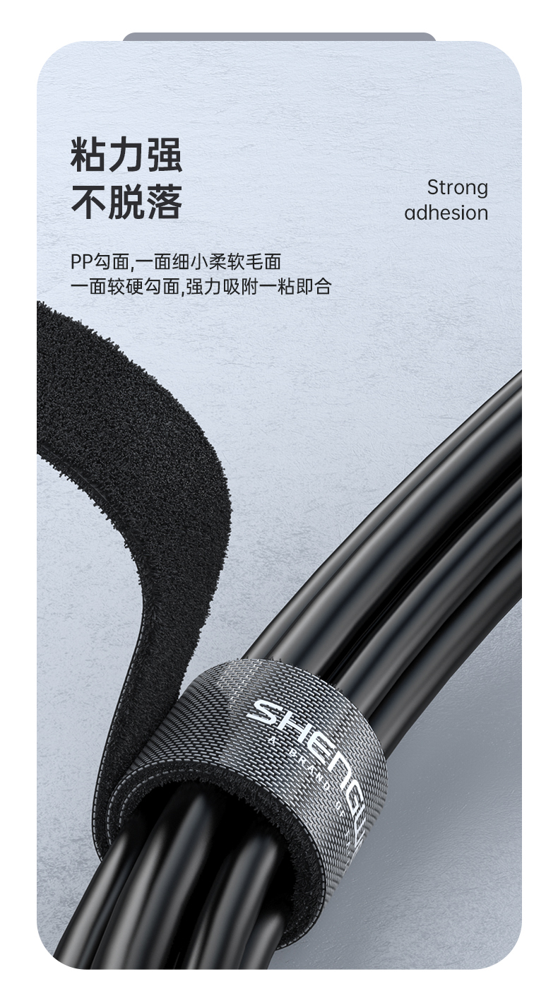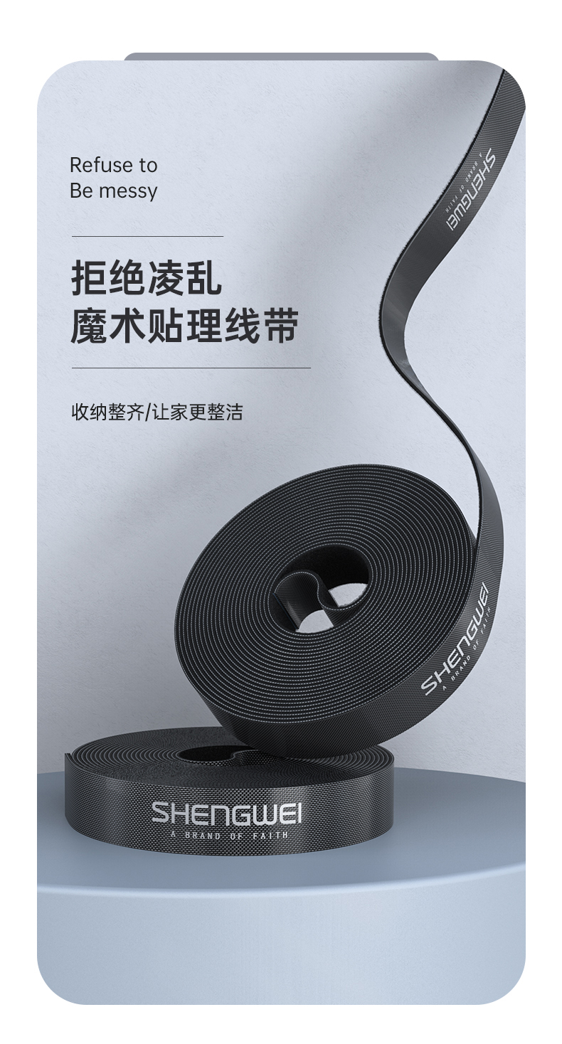 胜为电脑理线器 魔术贴桌面收纳固定整理免打孔 绕线器电线网线电源线扎带自粘式10米MP-2100 卷 曜石黑