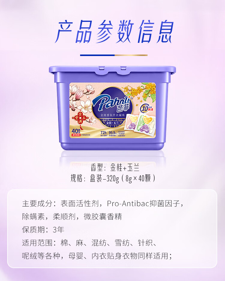 芭菲全效香氛洗衣凝珠四腔40颗320g 雨后百合(单位:盒) 拿铁色