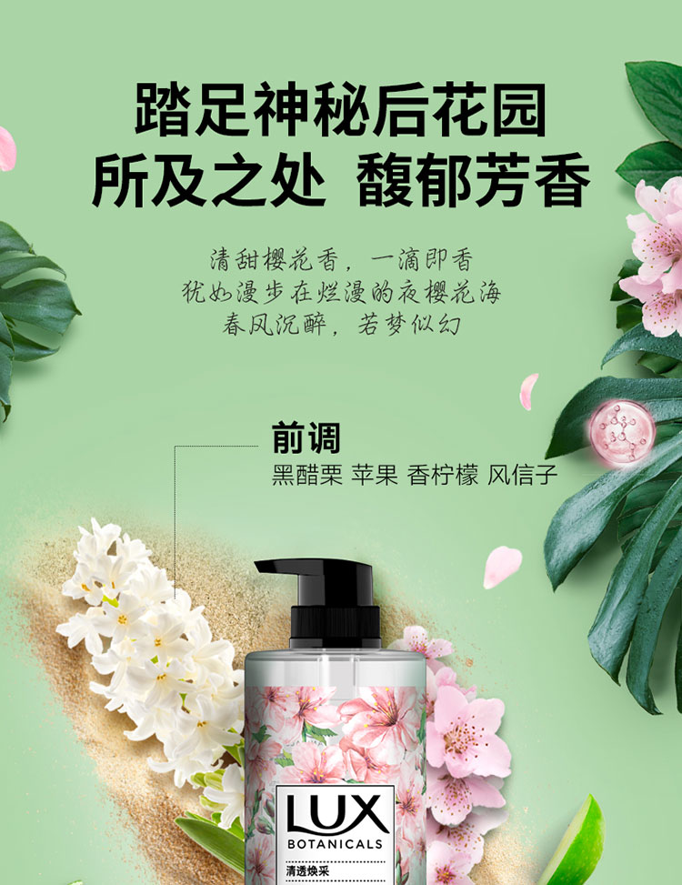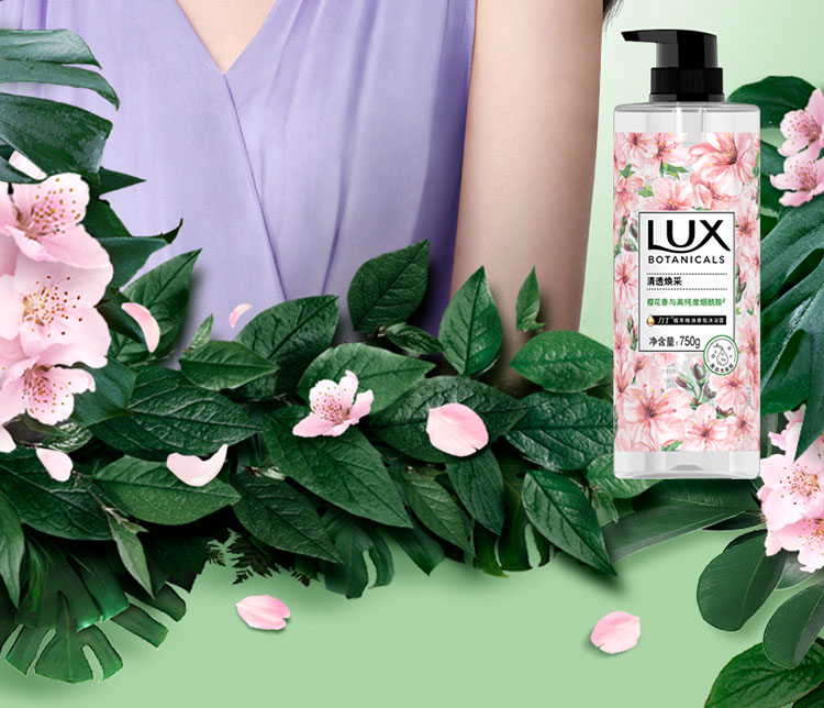 力士(LUX)植萃精油香氛沐浴露樱花香贴标装750G(单位:瓶) 混色