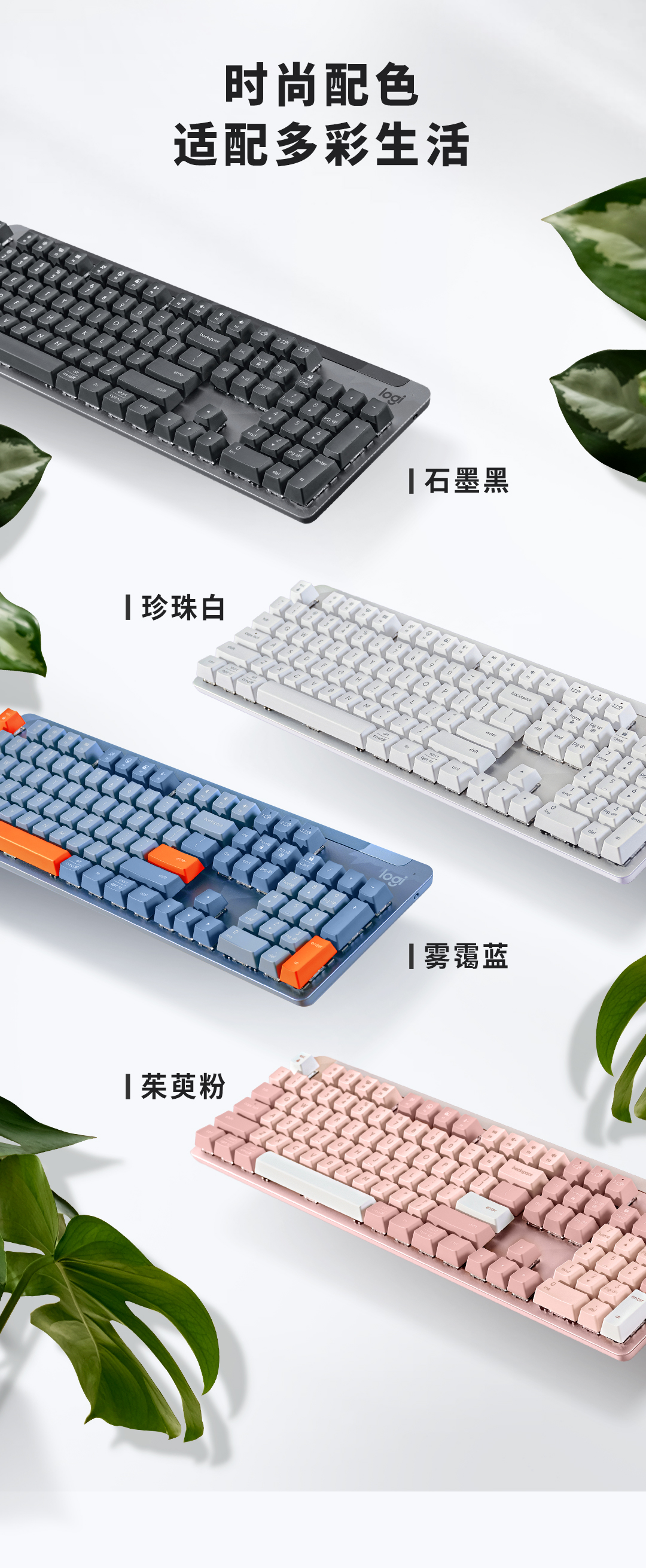 罗技(Logitech)K865无线机械键盘 蓝牙键盘办公游戏电竞键盘双模红轴 1只 雾霾蓝