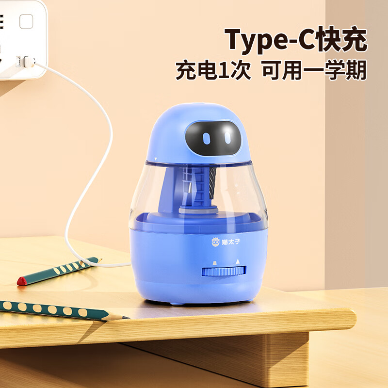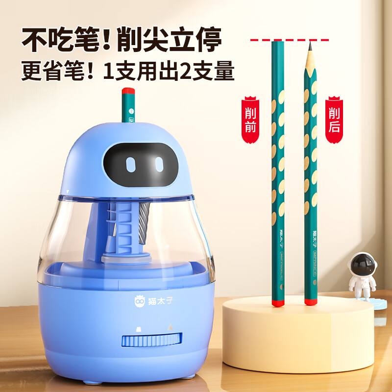 猫太子小学生全自动削笔器大口径电动卷笔转笔刀可削细杆大三角铅笔儿童开学文具生日礼物M3190 个 蓝色