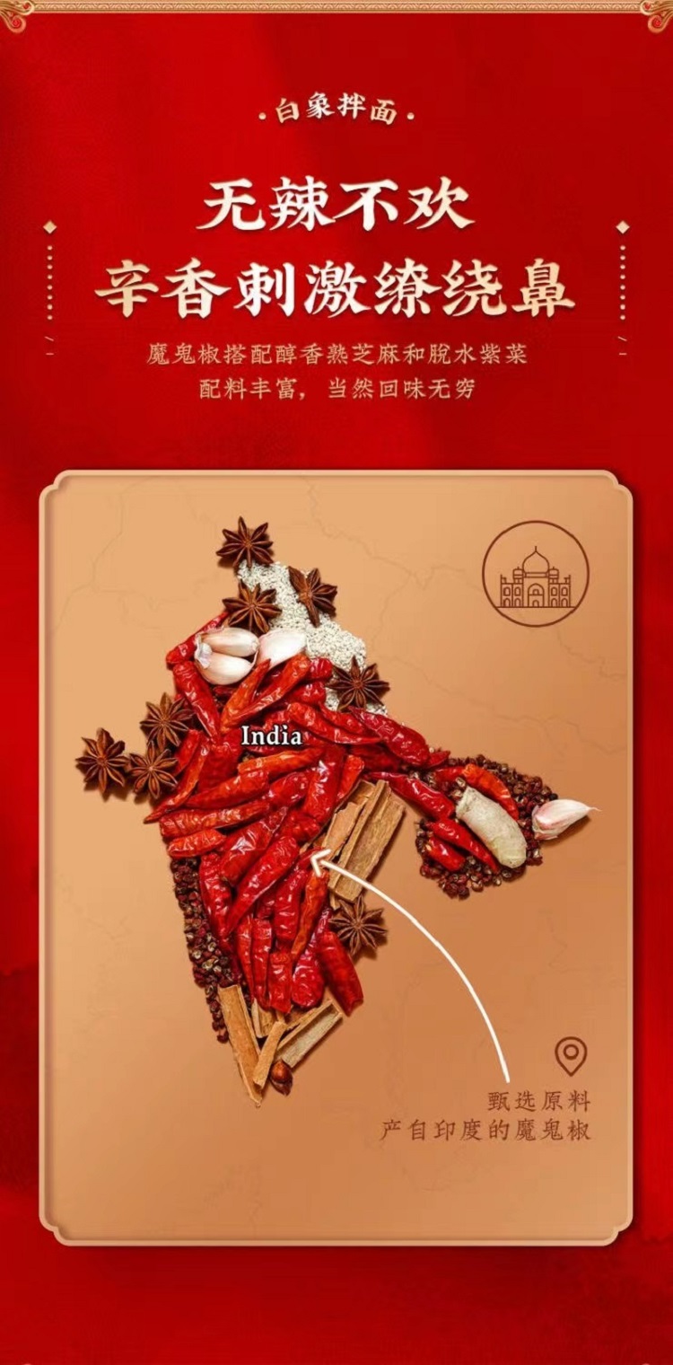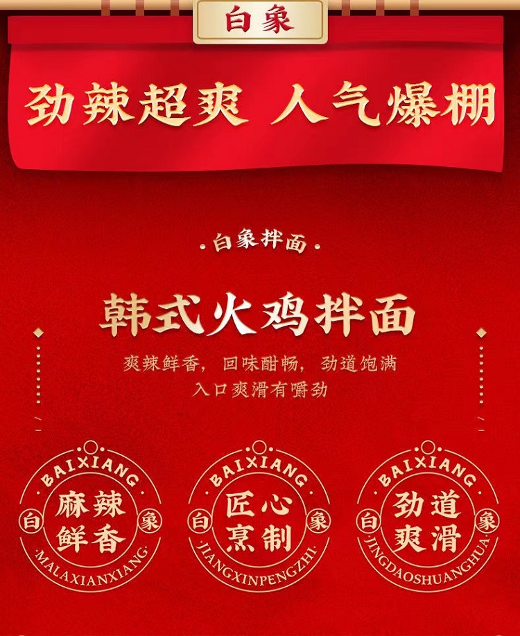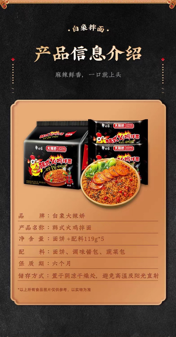 白象【大辣椒】韩式火鸡拌面 119g*5*6单位:箱 曜石黑