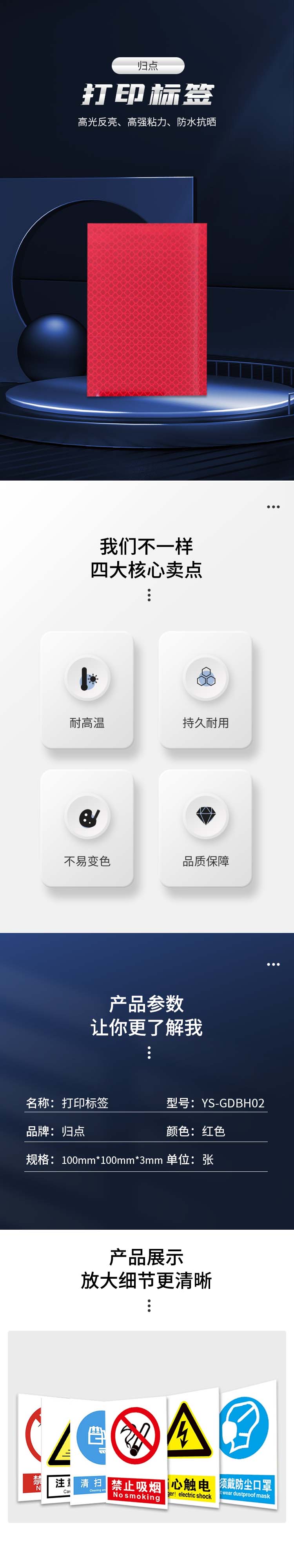 归点 YS-GDBH02 100*100*3mm 标签标牌 1.00 盒/张 (计价单位:张) 红色 红色