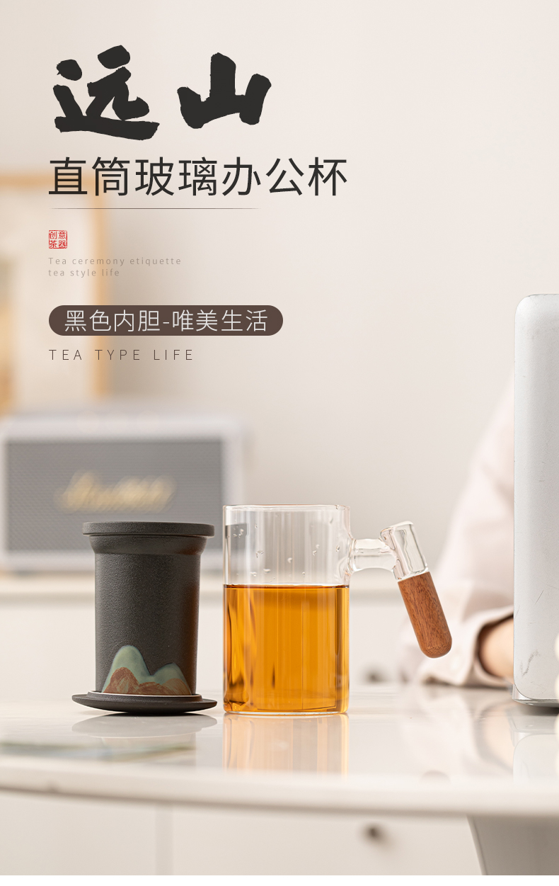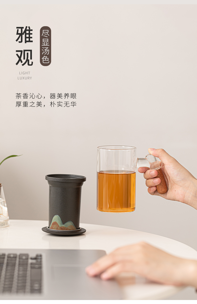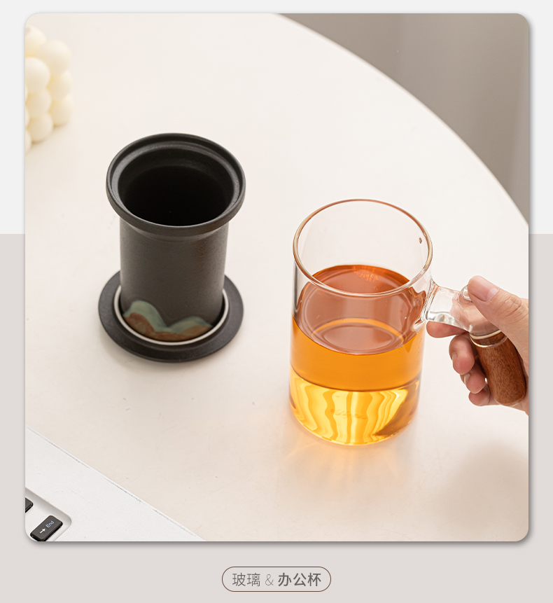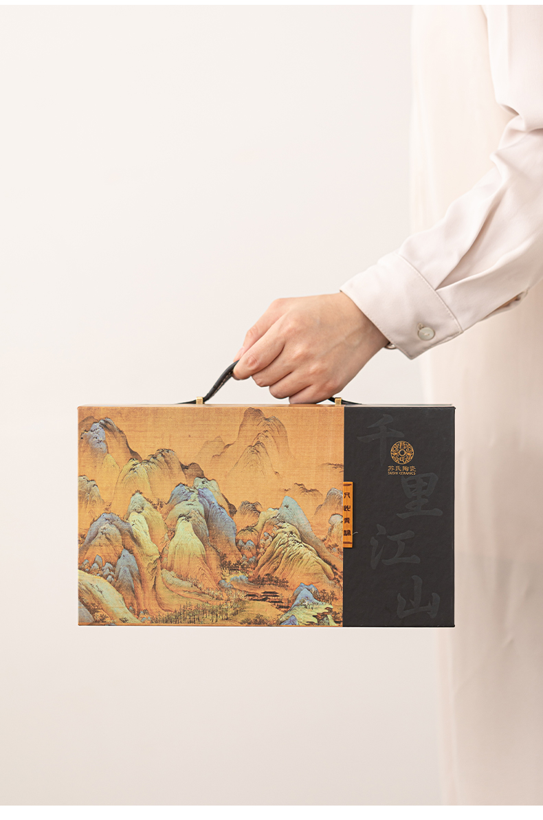 苏氏陶瓷(SUSHI CERAMICS)J1081手绘釉画彩千里江山玻璃办公杯(单位:套) 透明色