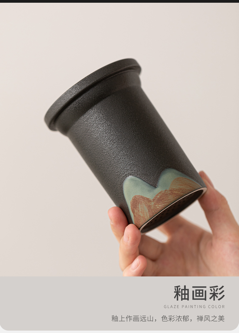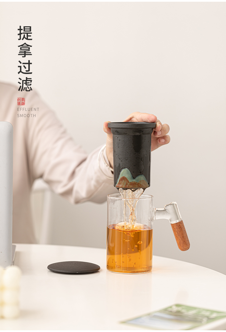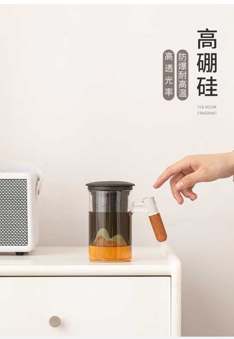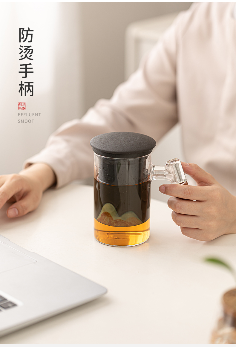 苏氏陶瓷(SUSHI CERAMICS)J1081手绘釉画彩千里江山玻璃办公杯(单位:套) 透明色