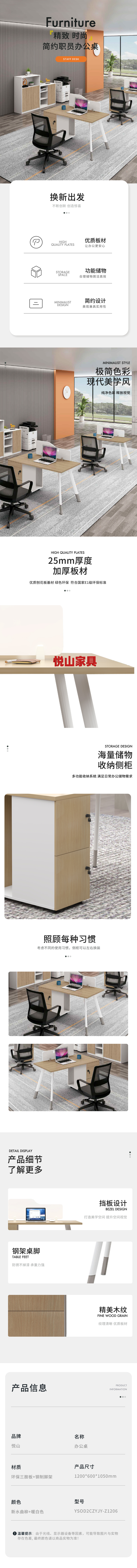 悦山 现代简约职员办公卡位带侧柜 1200*600*1050mm*1张 新水曲柳+暖白色
