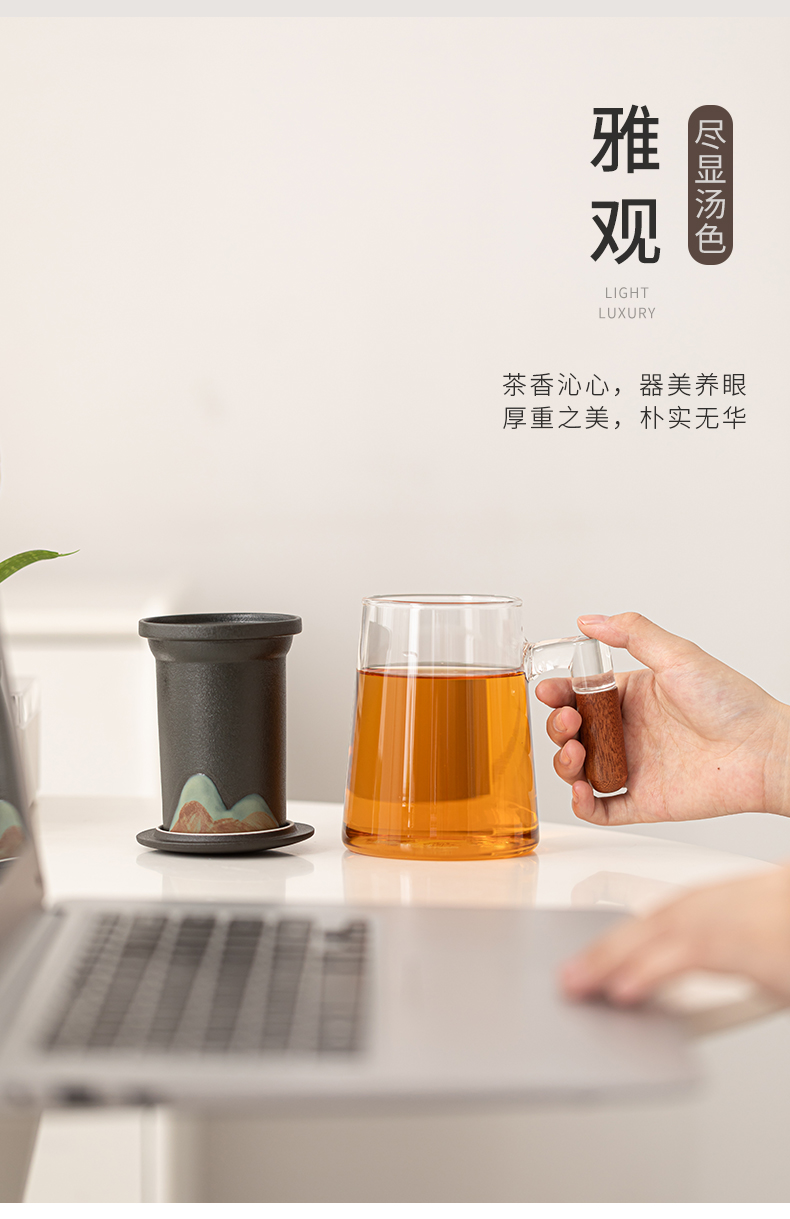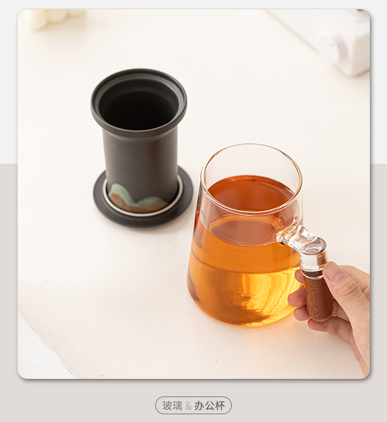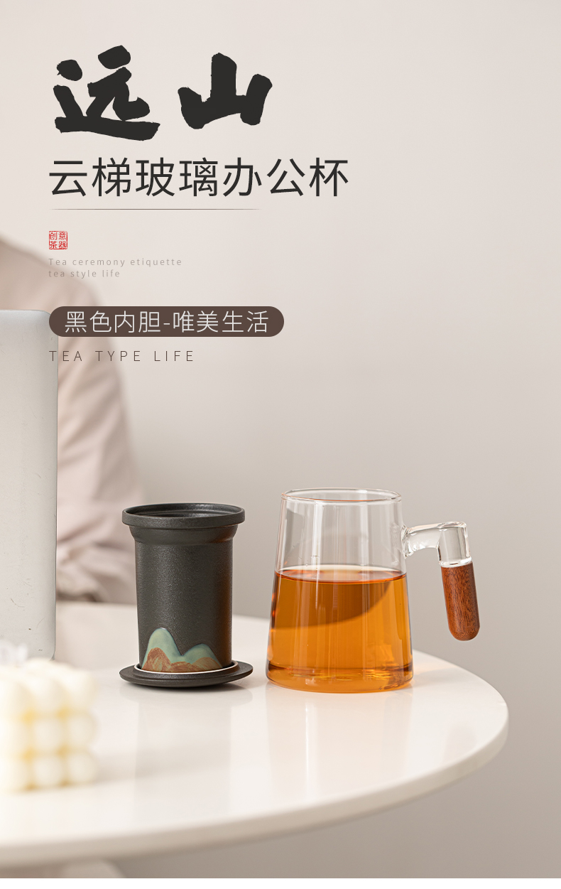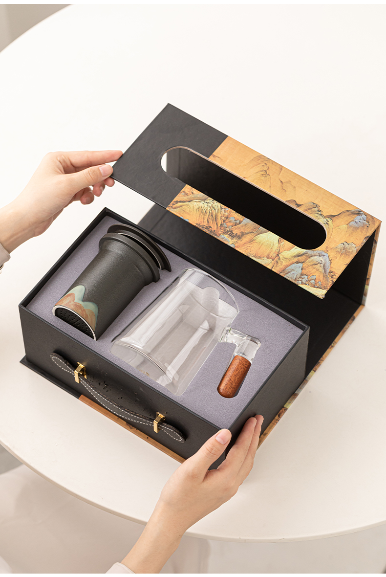 苏氏陶瓷(SUSHI CERAMICS)J1082手绘釉画彩千里江山云梯玻璃办公杯(单位:套) 透明色