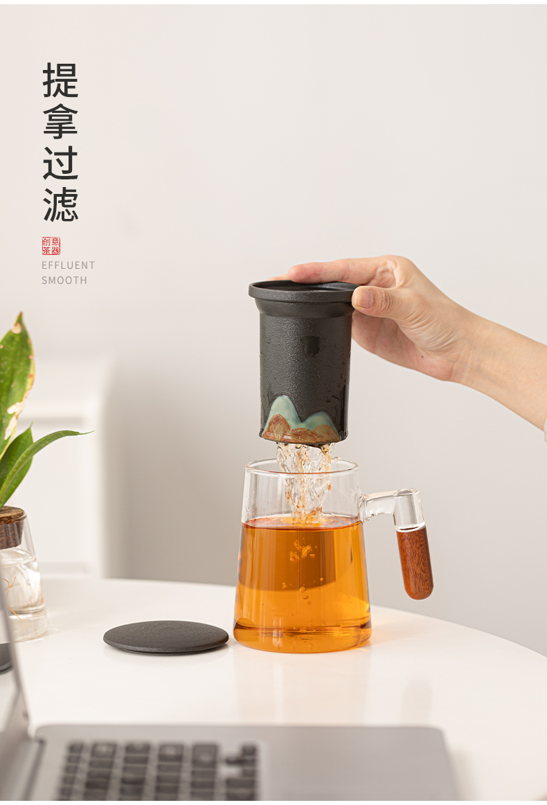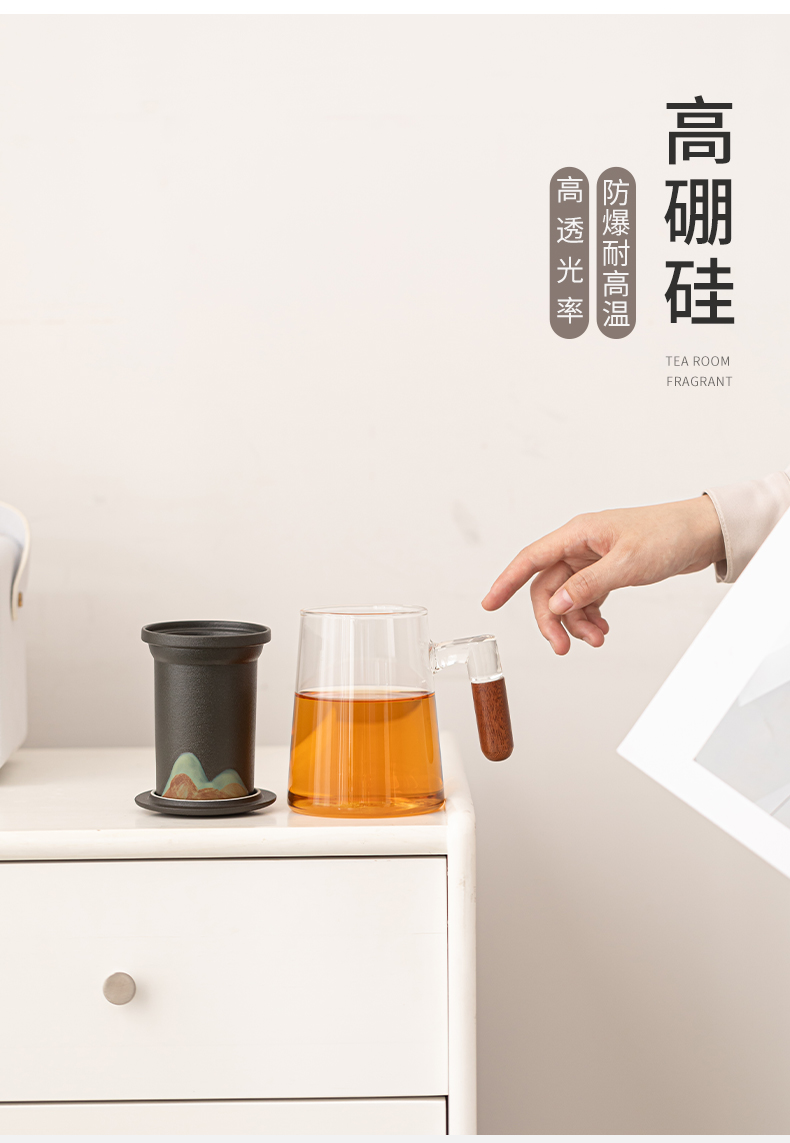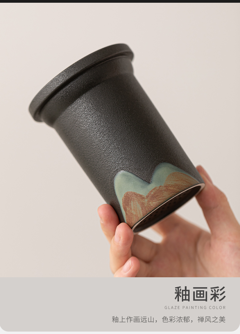 苏氏陶瓷(SUSHI CERAMICS)J1082手绘釉画彩千里江山云梯玻璃办公杯(单位:套) 透明色