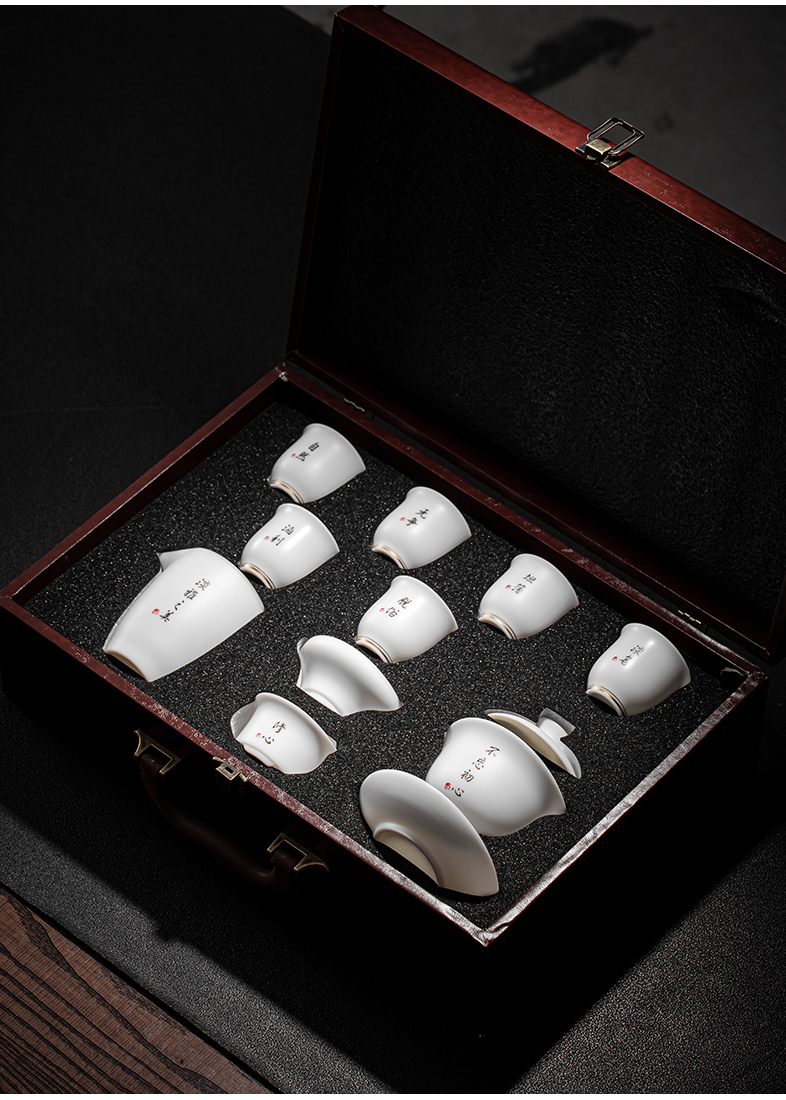 苏氏陶瓷(SUSHI CERAMICS)J0443素烧羊脂玉瓷薄胎印字茶具礼盒套装(单位:套) 白色