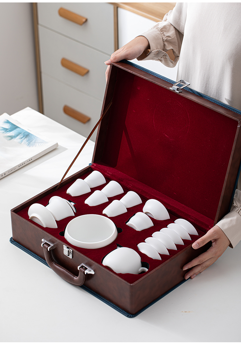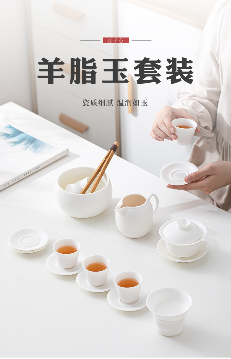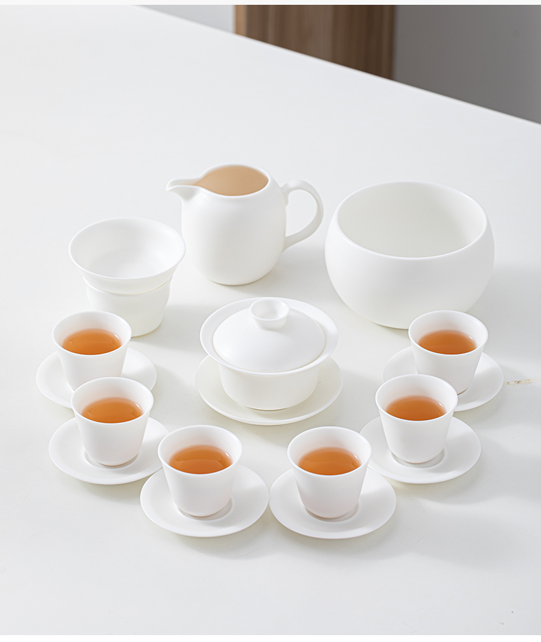 苏氏陶瓷(SUSHI CERAMICS)J0445素烧羊脂玉瓷茶具大套礼盒装(单位:套) 白色