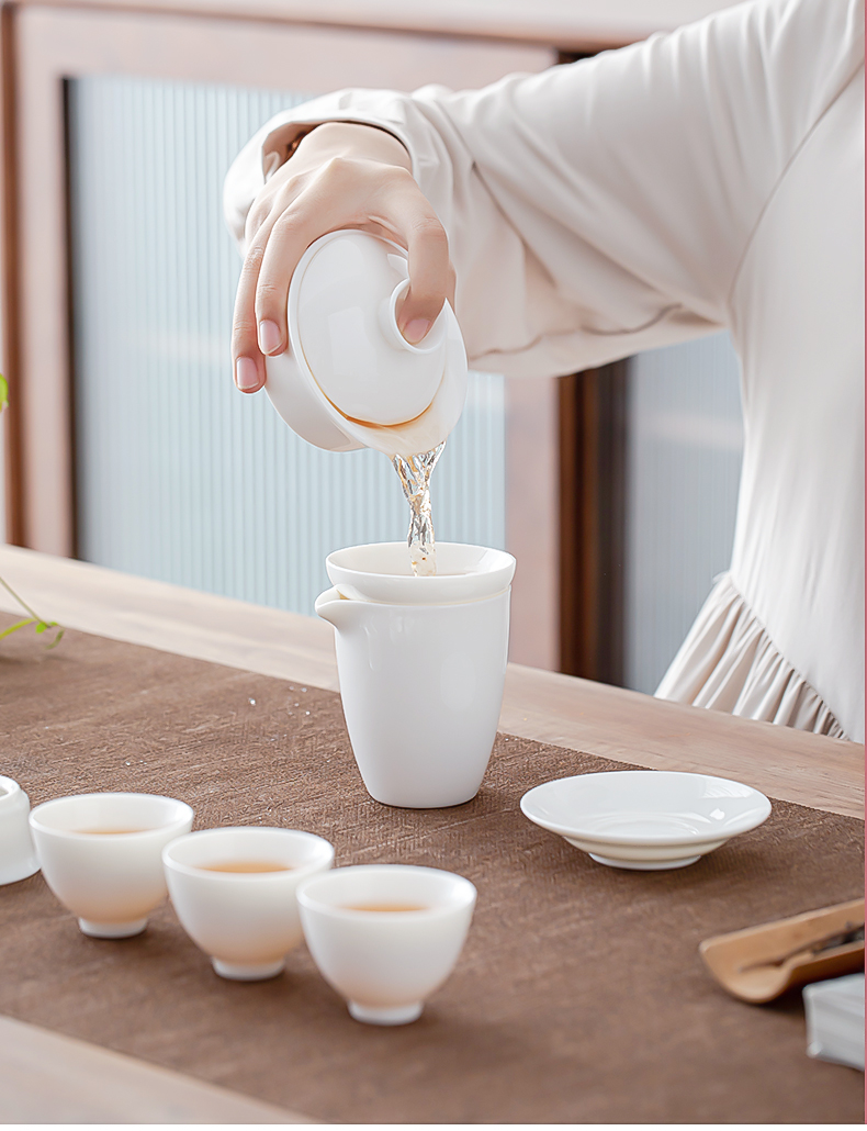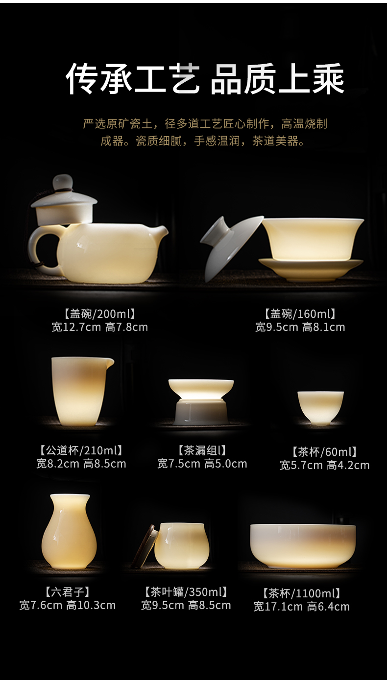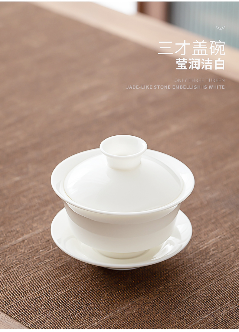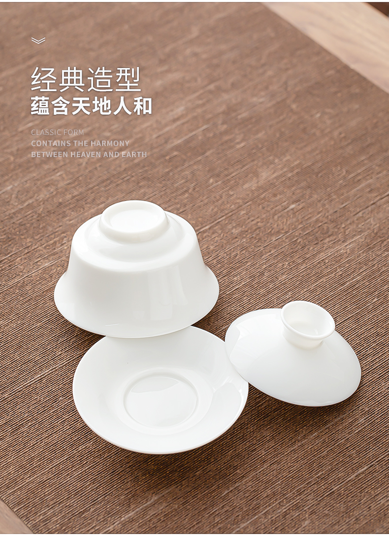 苏氏陶瓷(SUSHI CERAMICS)J0450羊脂玉瓷盖碗泡茶壶茶洗六君子安全包装(单位:套) 白色