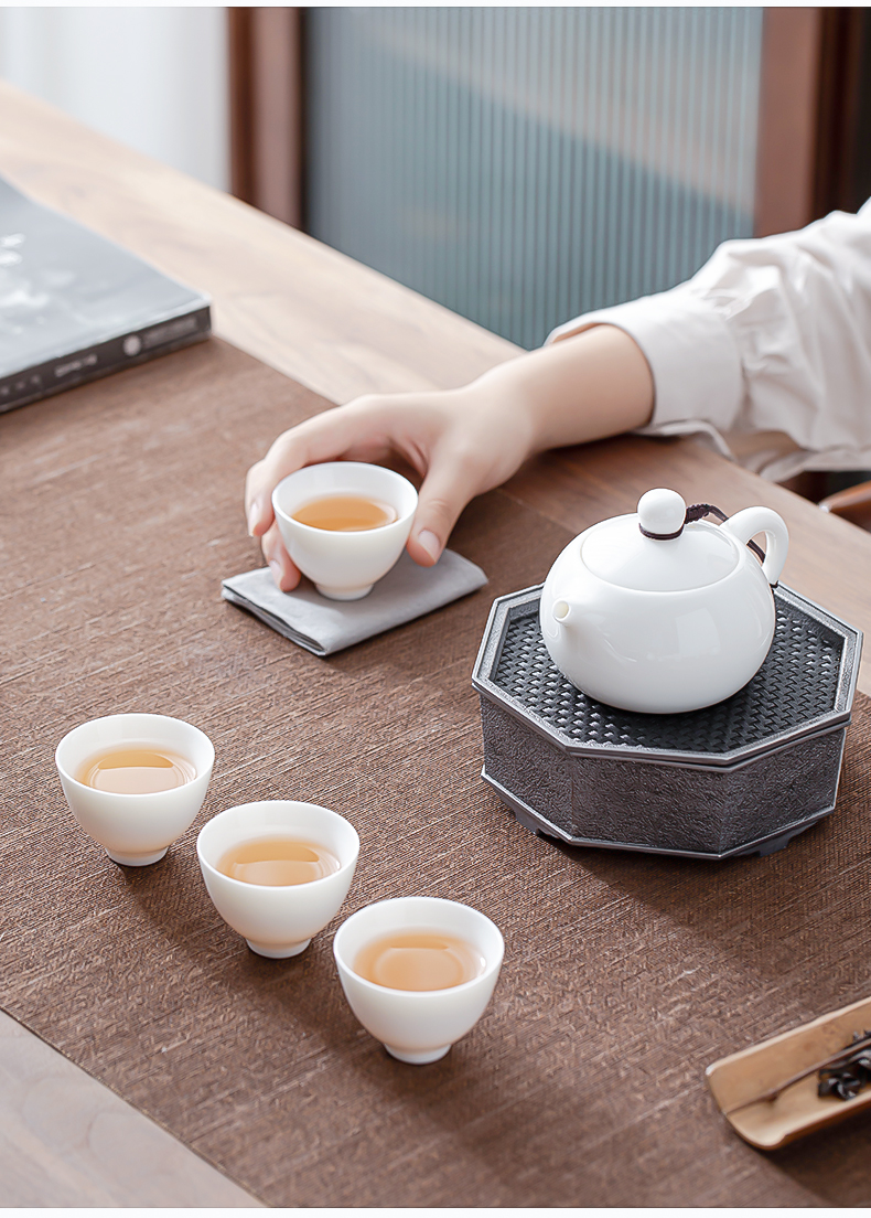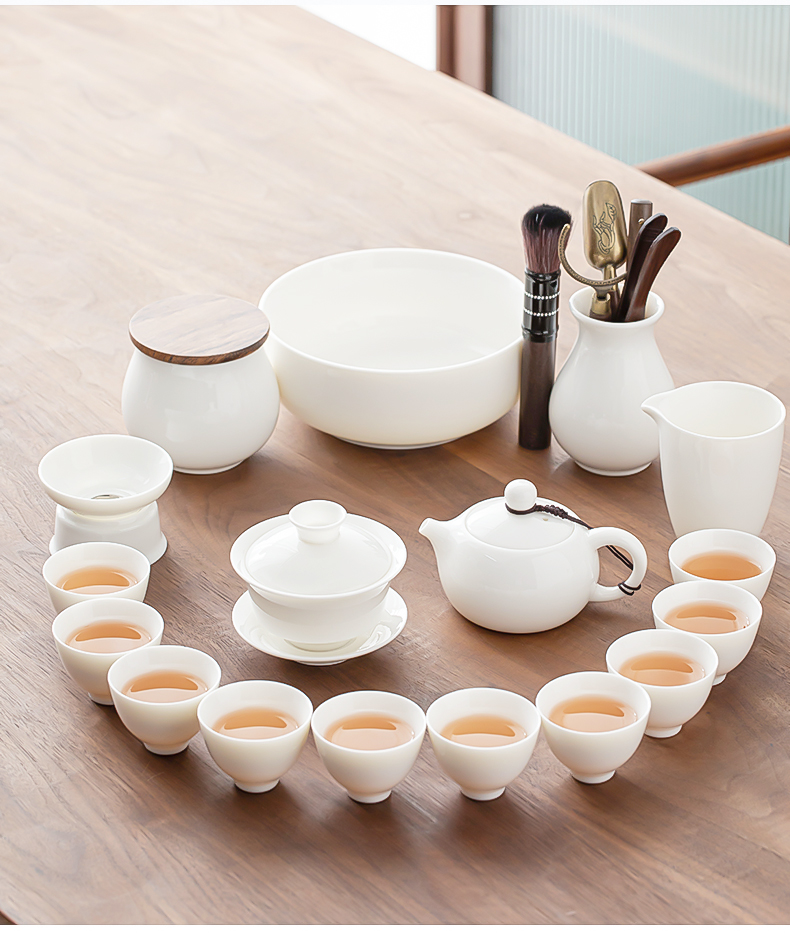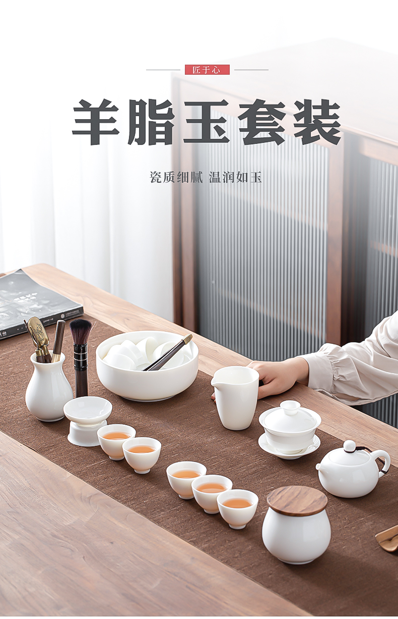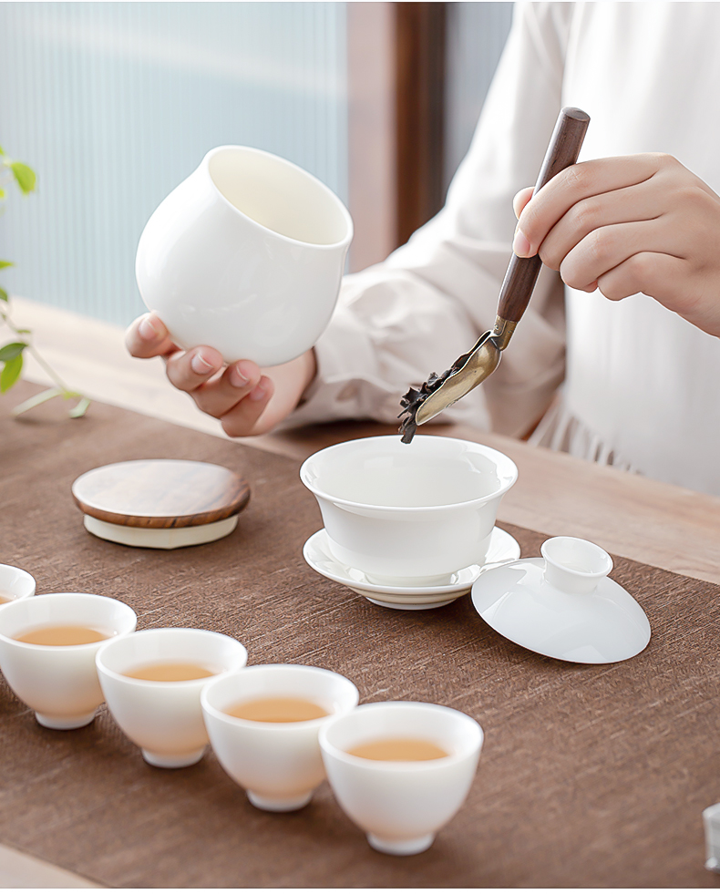 苏氏陶瓷(SUSHI CERAMICS)J0450羊脂玉瓷盖碗泡茶壶茶洗六君子安全包装(单位:套) 白色
