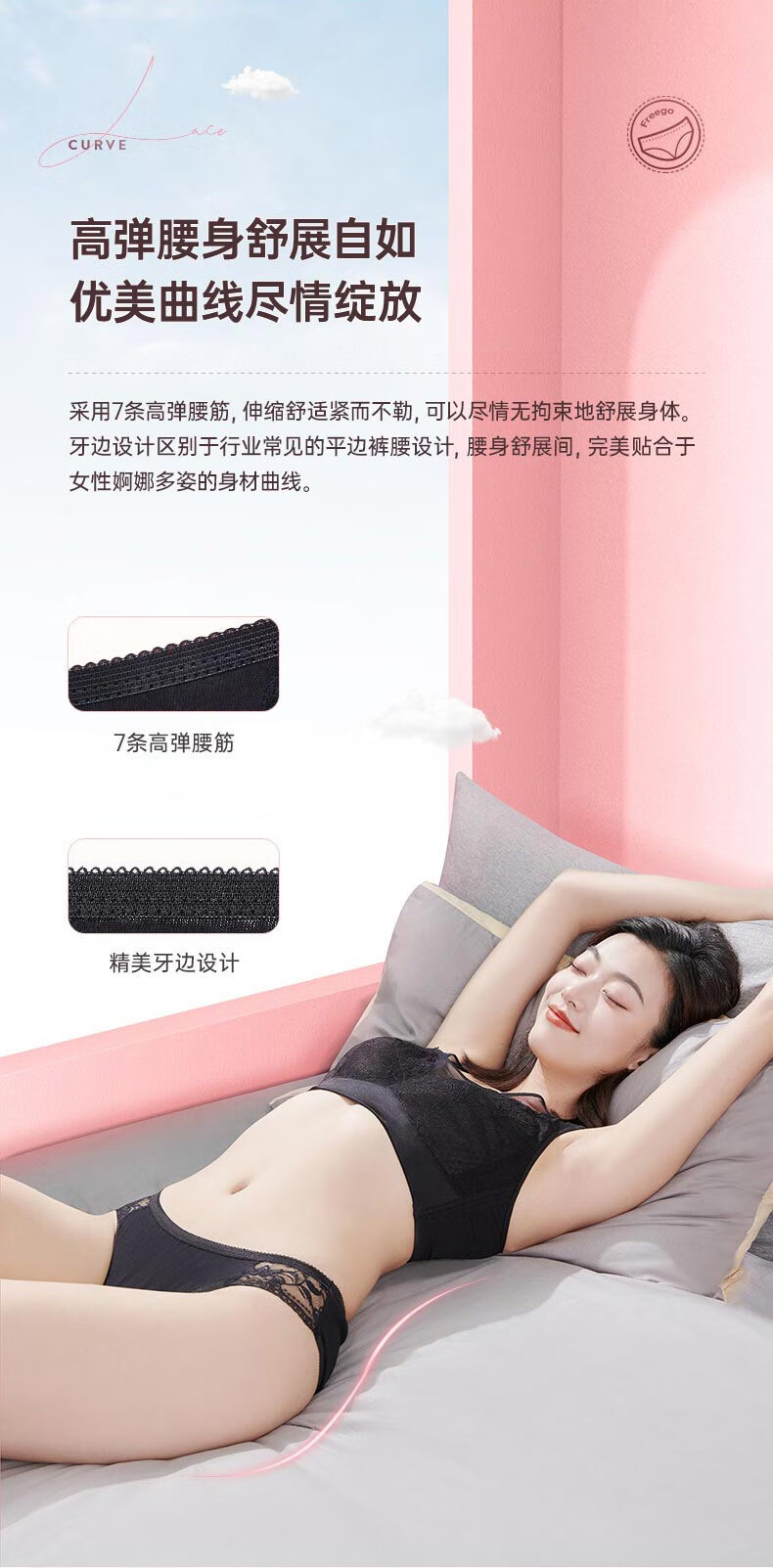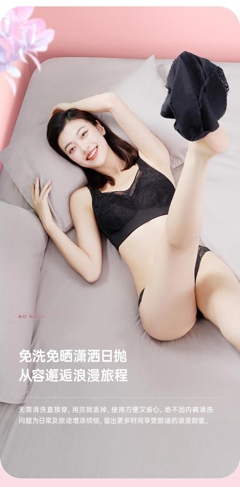 Freego女士蕾丝款一次性内裤-黑色 黑色 M码*4包