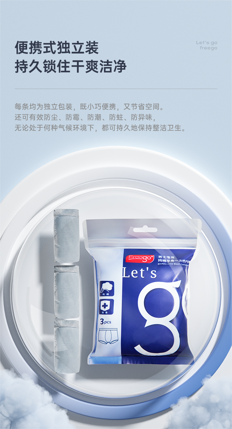 Freego太空灰男士一次性纯棉平角内裤 灰色 L码*4包