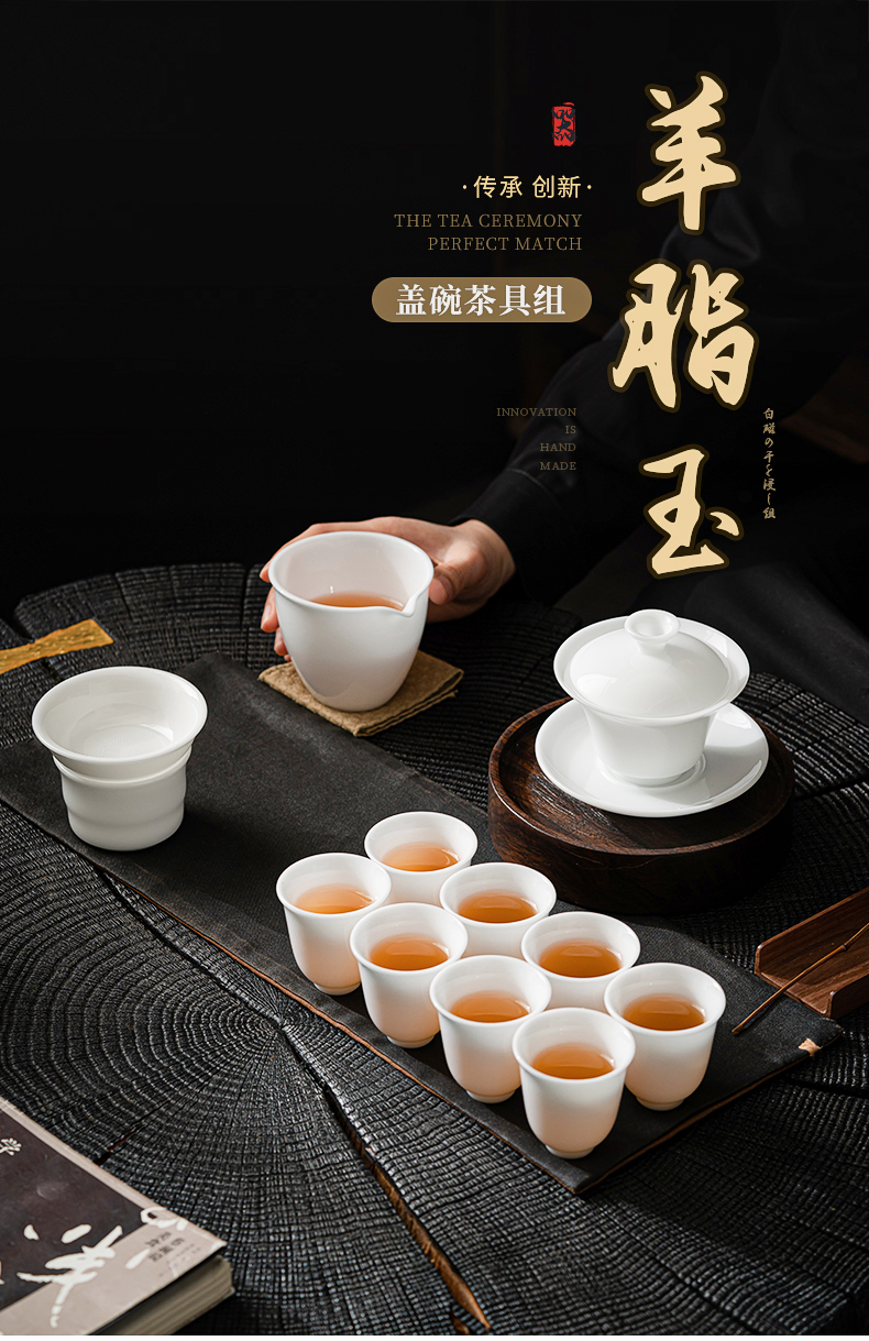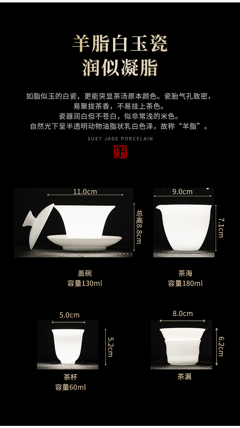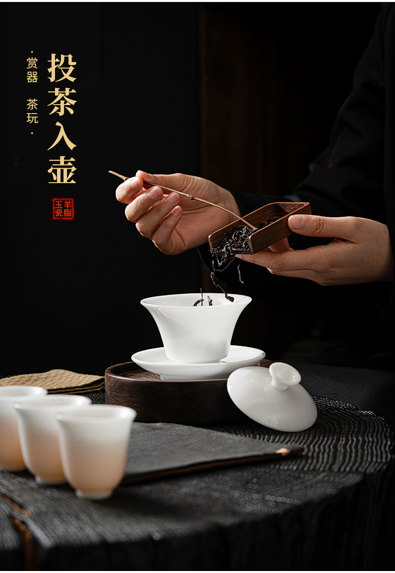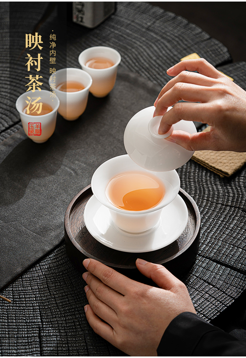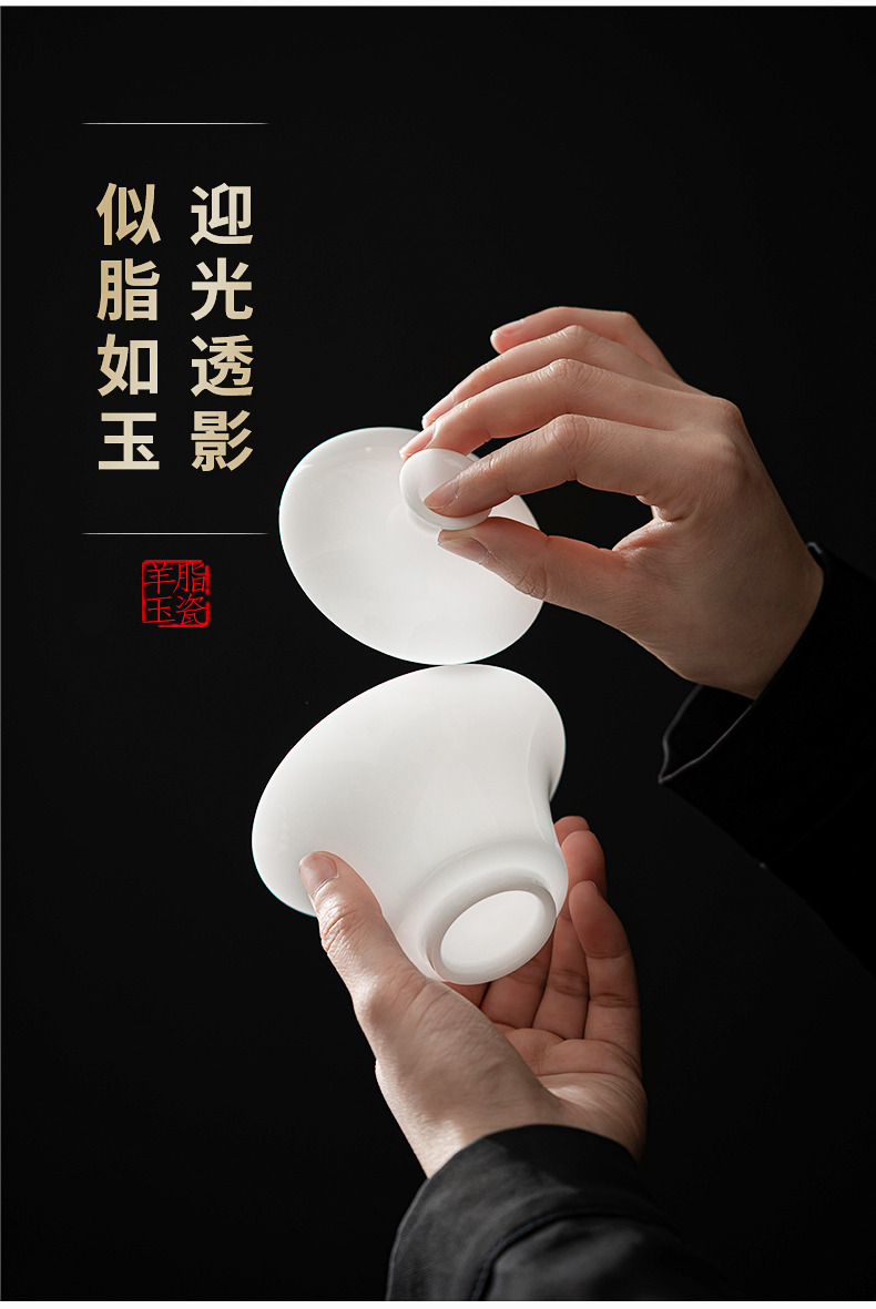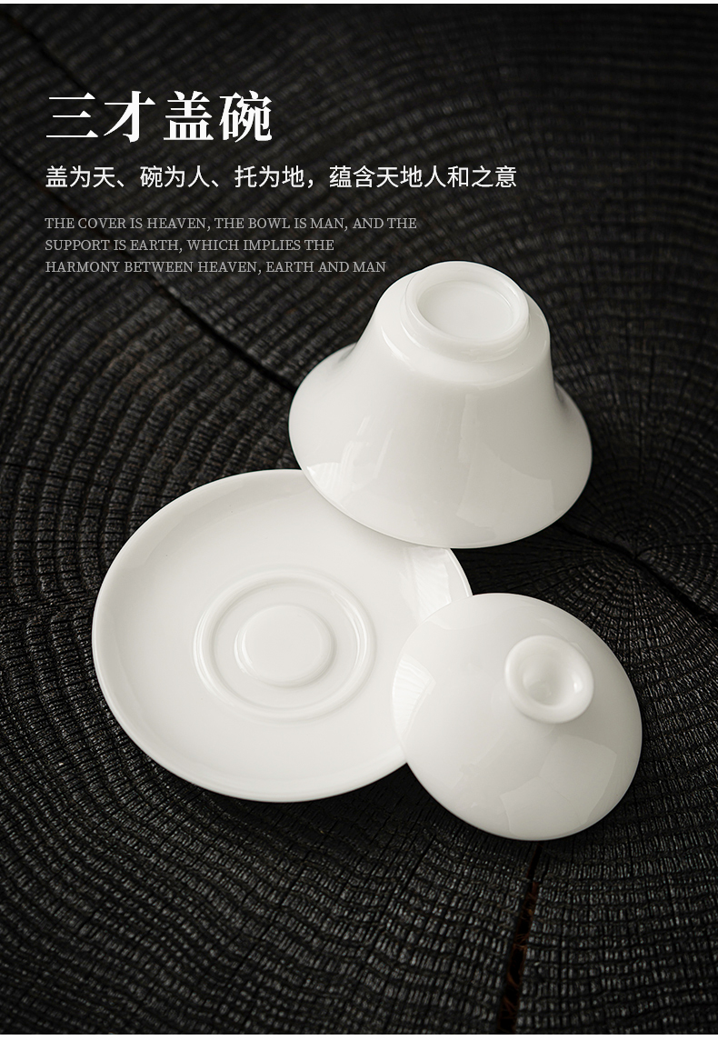 苏氏陶瓷(SUSHI CERAMICS)J0589冰种白瓷三才盖碗聚香茶杯套装礼盒装(单位:套) 白色