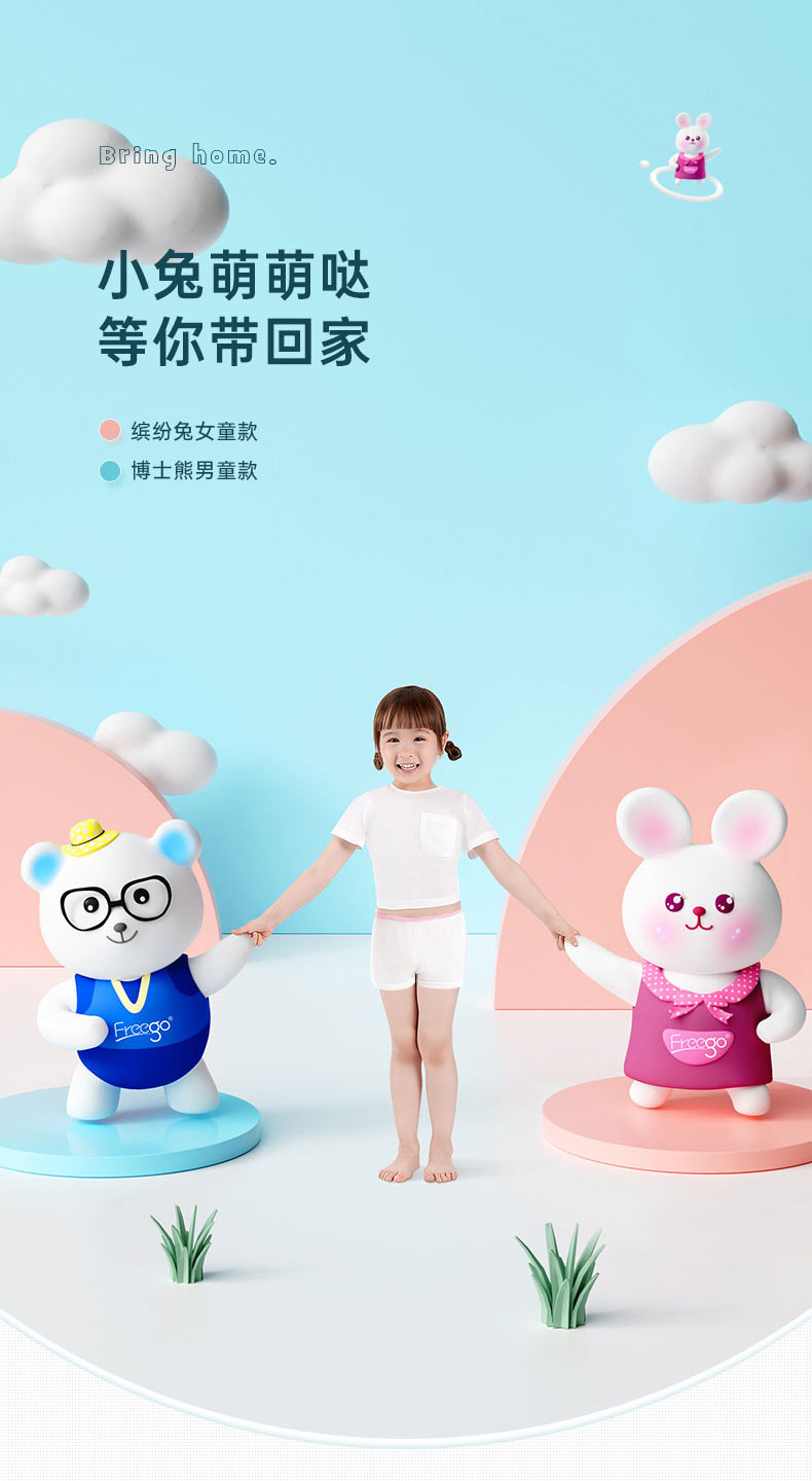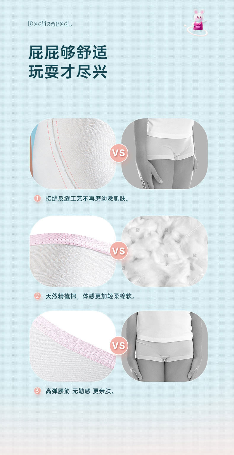 Freego第四代儿童一次性纯棉内裤-女童平角款白色 白色 S码*2包