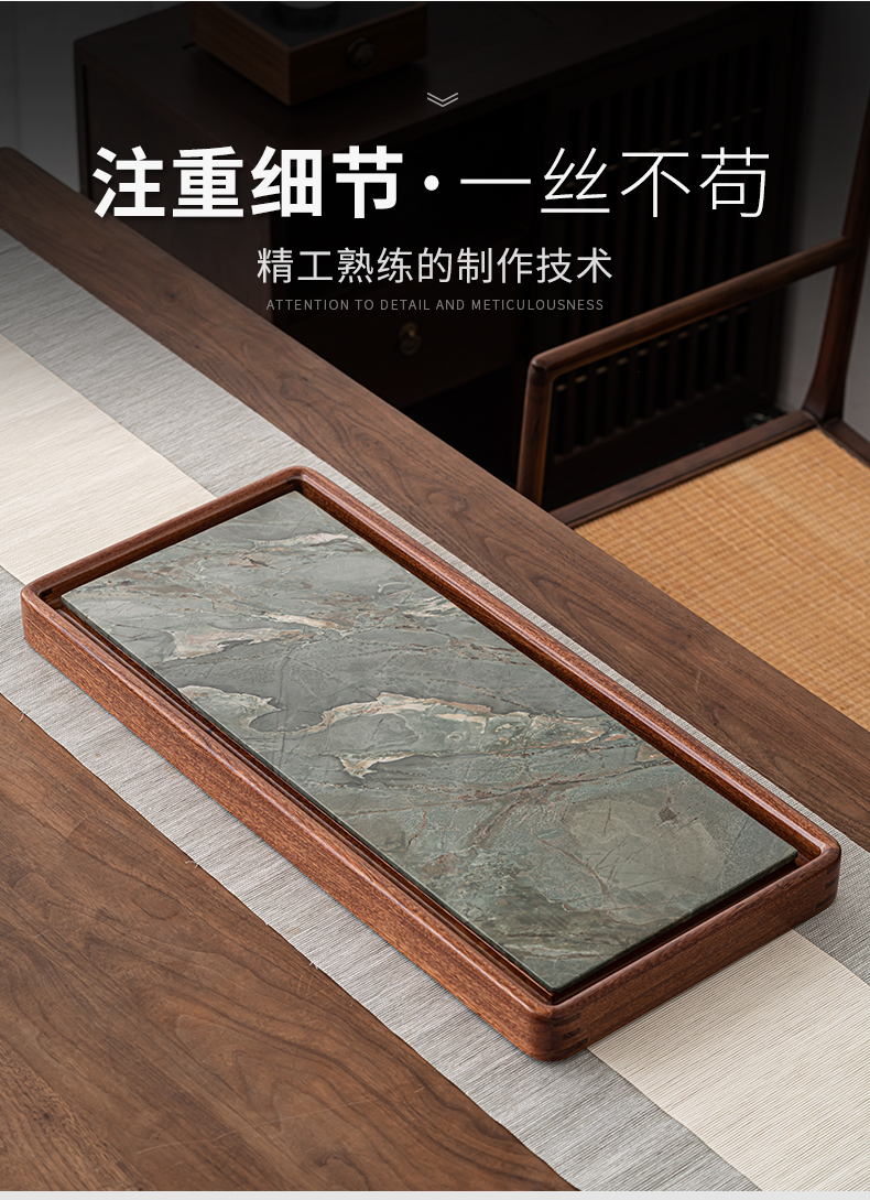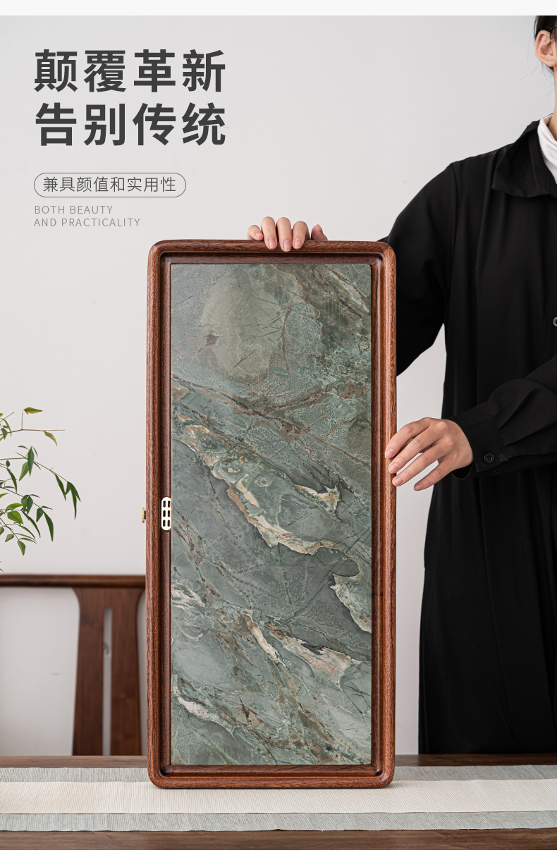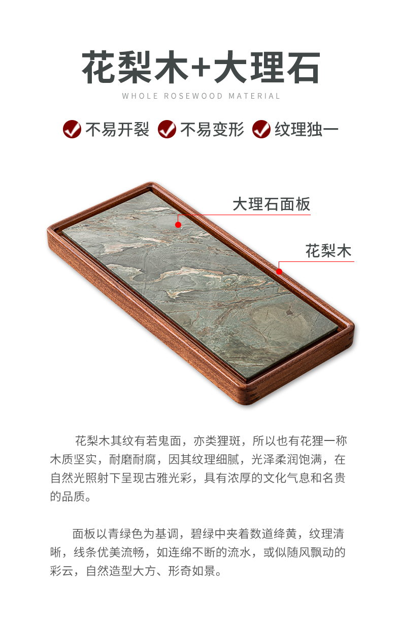 苏氏陶瓷(SUSHI CERAMICS)J0635九龙壁花梨木茶盘干湿两用66*30cm(单位:个) 混色