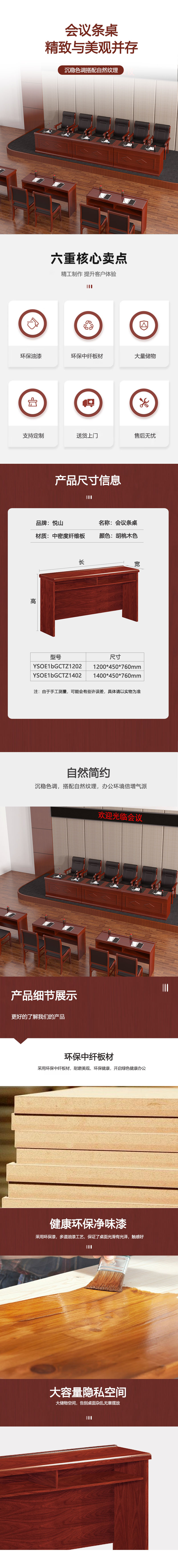 悦山 培训桌会议桌油漆类长条桌 胡桃木色 1400*450*760*1张
