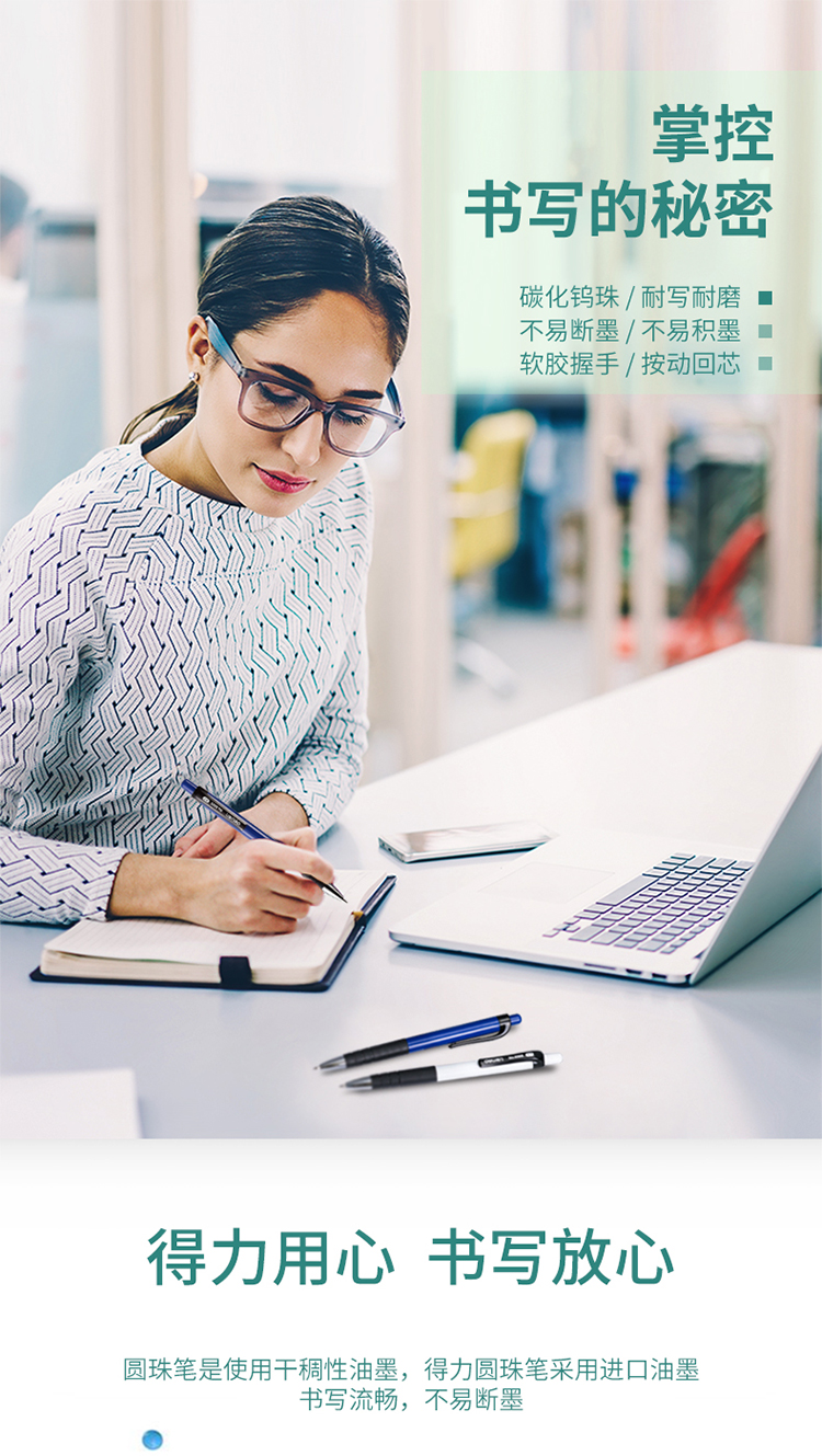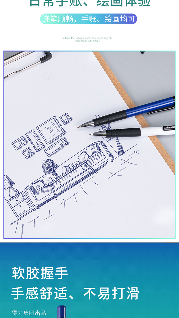 得力(deli)圆珠笔中油笔 0.7mm子弹头按动笔原子笔 办公用品 蓝色 12支/盒 单位:盒 蓝色