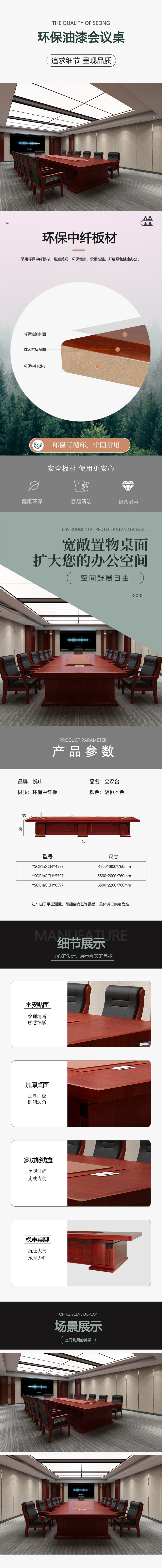 悦山 会议桌办公大型油漆会议台贴木皮开会洽谈长桌 胡桃木色 4500*1800*760*1张
