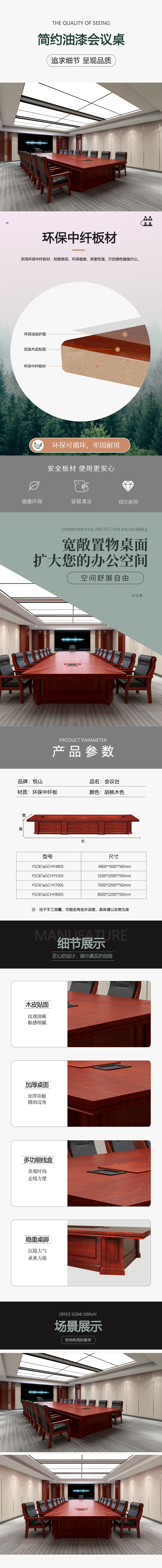 悦山 会议桌长桌简约现代油漆接待洽谈桌 胡桃木色 4800*1600*760*1张