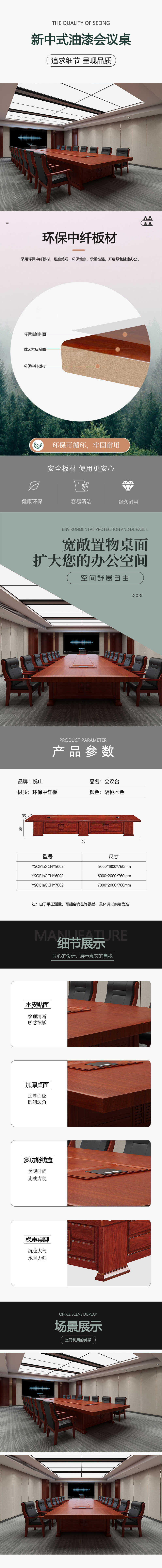 悦山 大型会议桌油漆会议台 胡桃木色 6000*2000*760 *1张