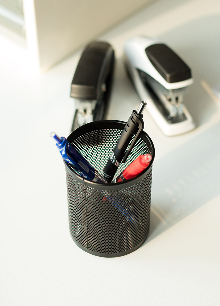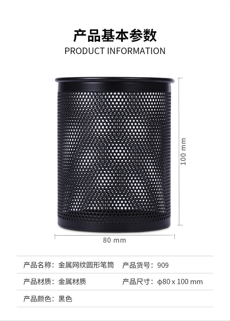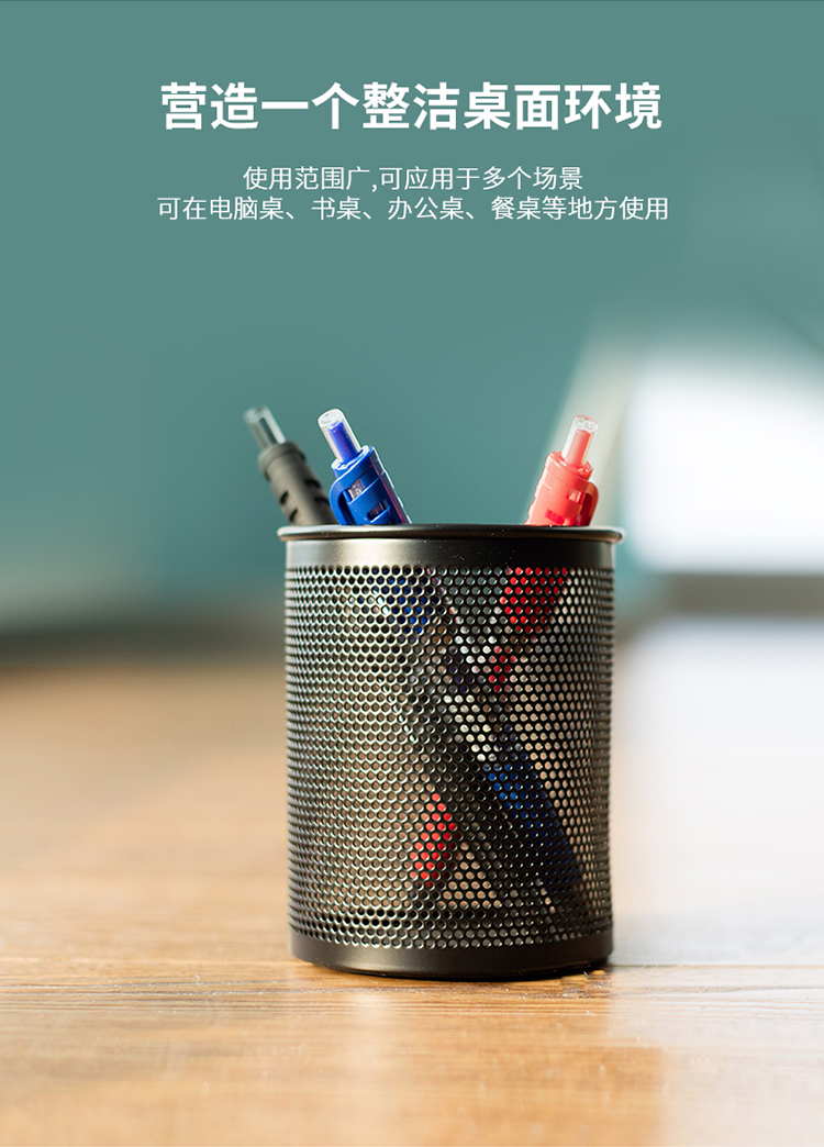 得力(deli)密集金属网纹圆形笔筒 创意桌面收纳盒 办公用品 黑色909 2个起订 黑色
