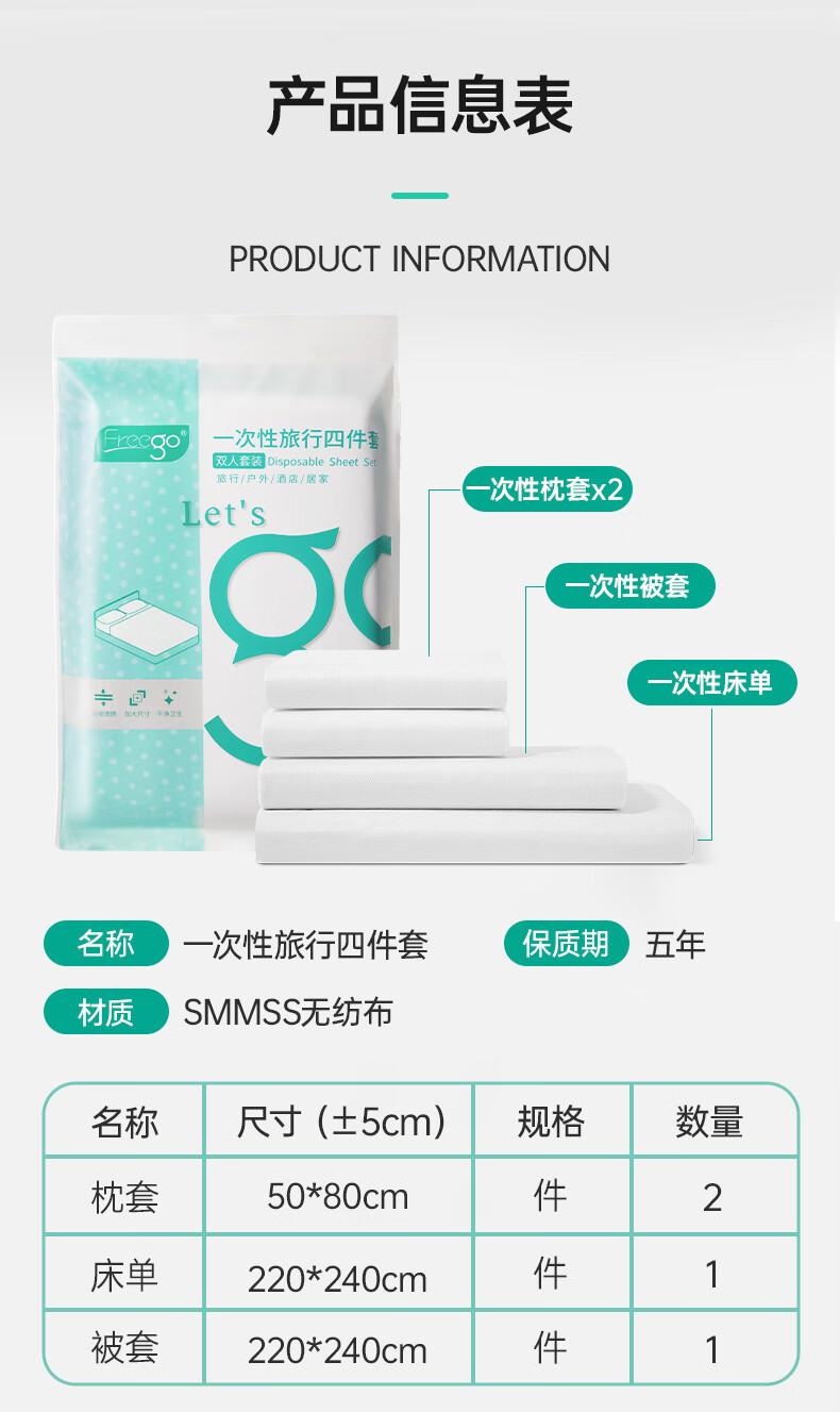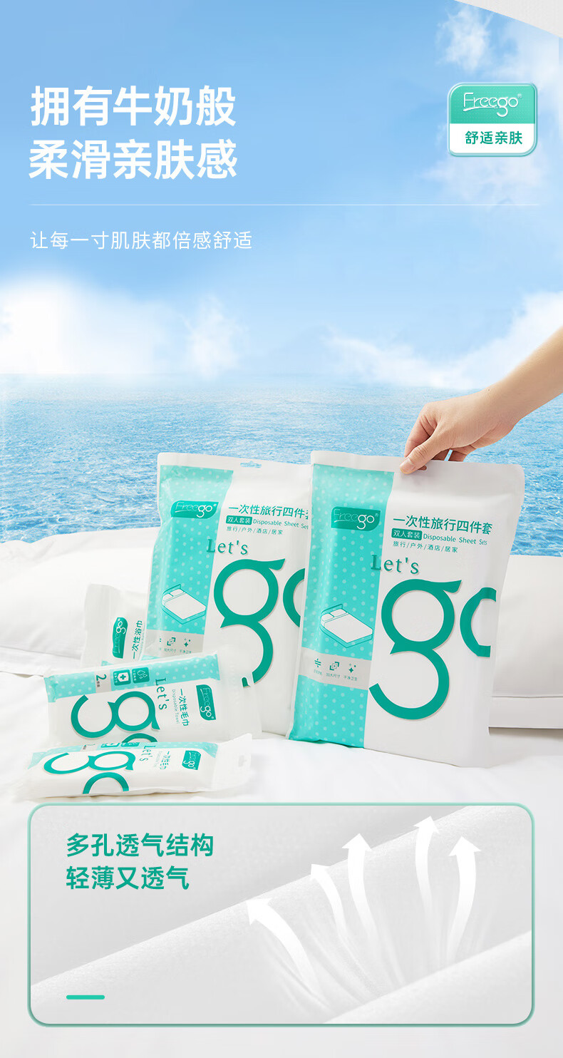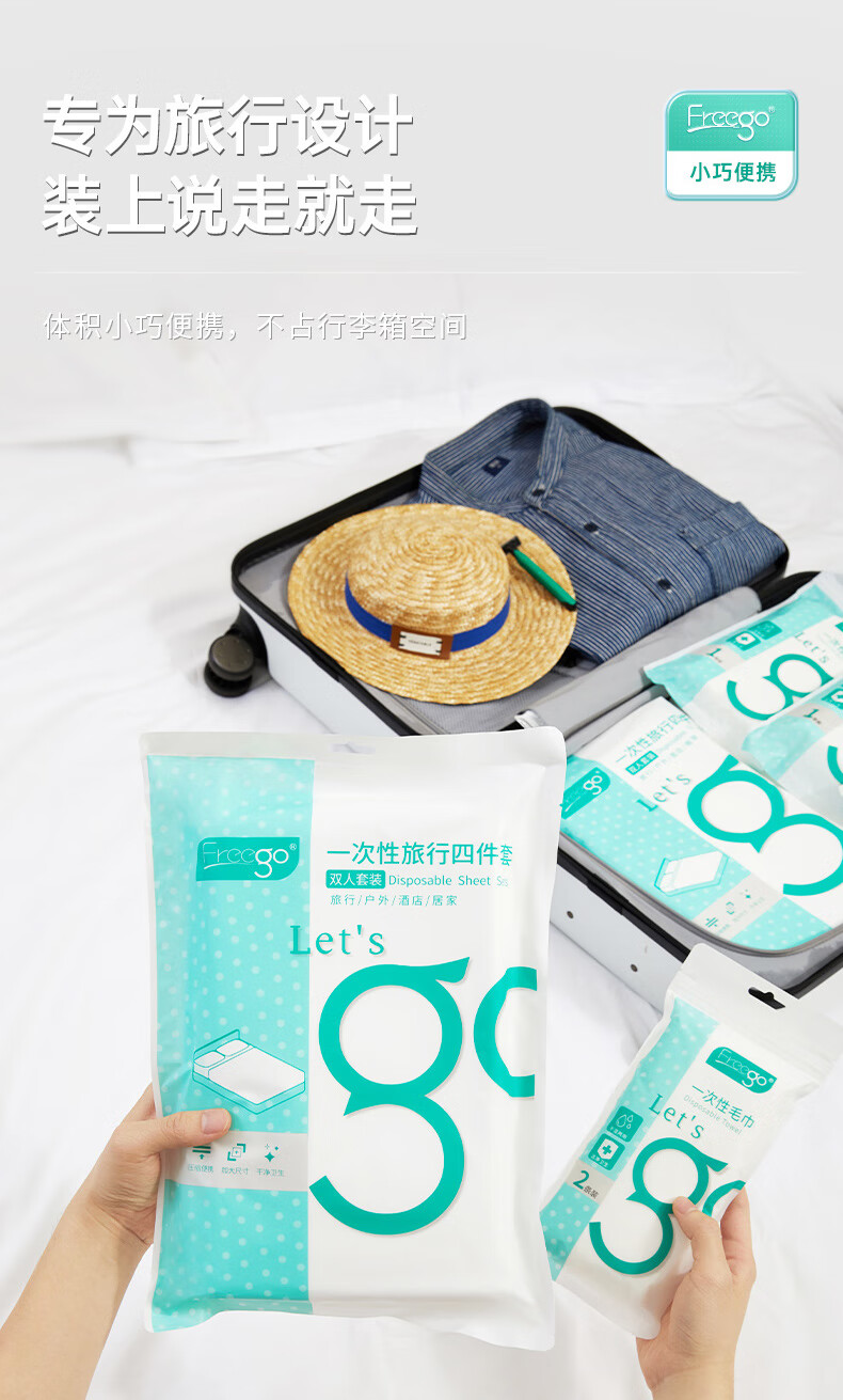 Freego压缩一次性床上四件套(50*80cm x2、220*240cm 、220*240cm) 白色 4包