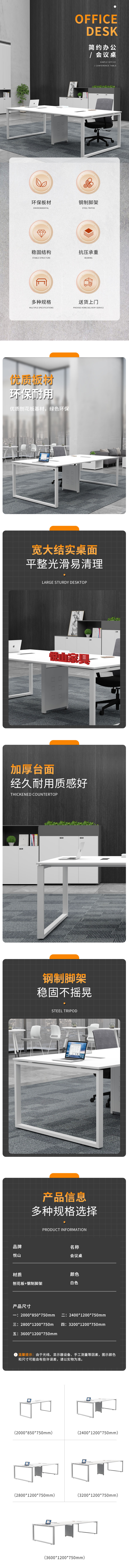 悦山 办公会议桌简约长条桌 白色 2400*1200*750mm*1张