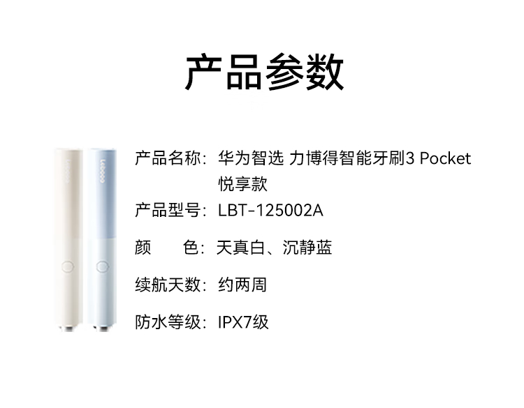 华为智选 力博得智能声波牙刷2冰山款 LBT-153019A(单位:支) 天蓝色
