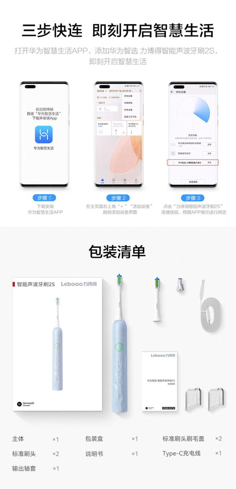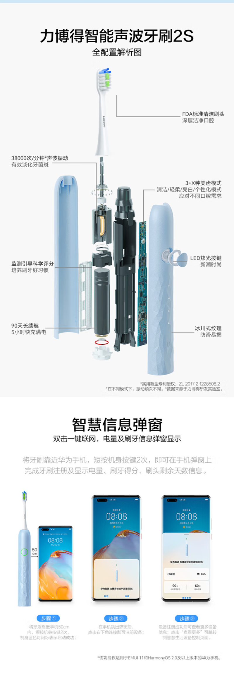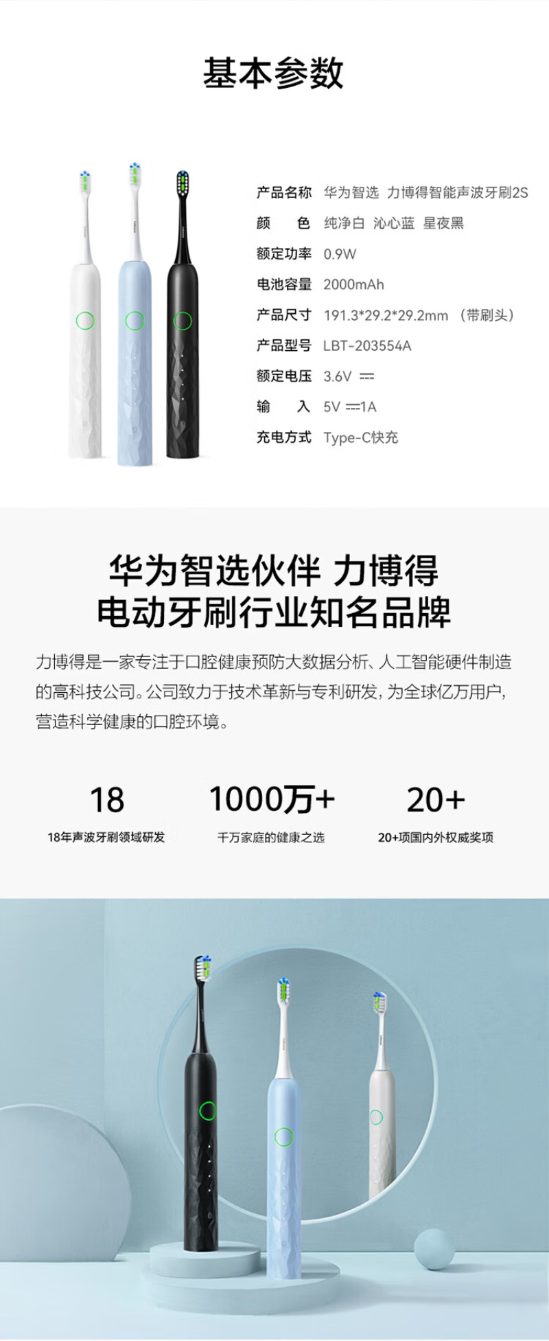 华为智选 力博得 智能声波牙刷 2S LBT-203554A(单位:支) 黑色