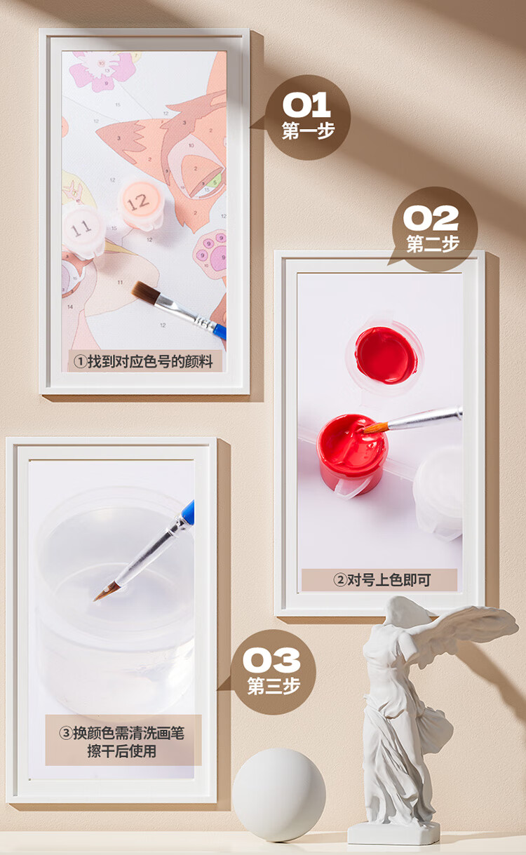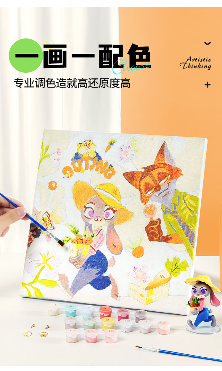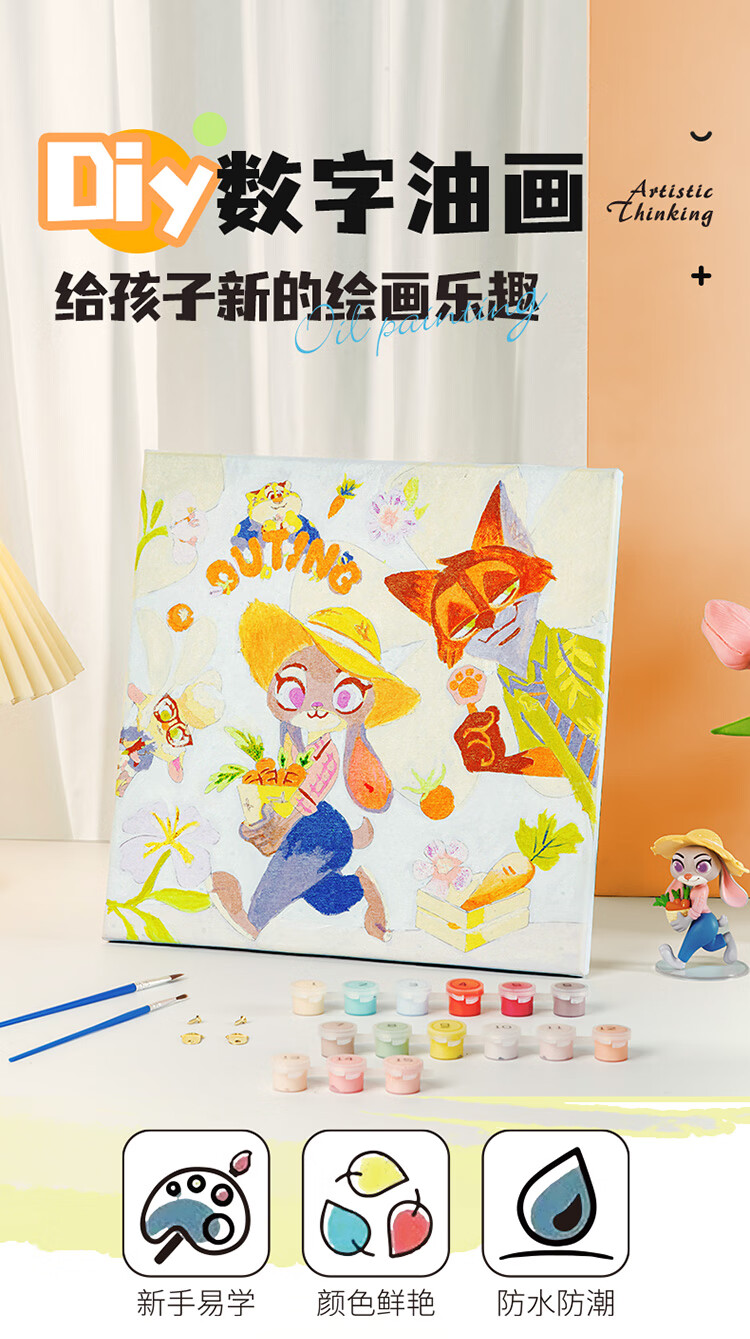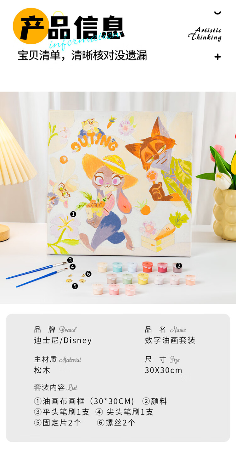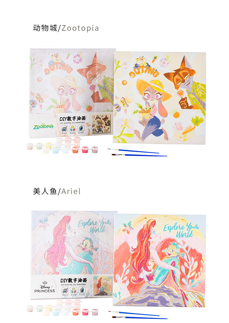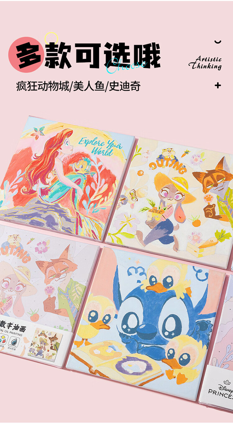 迪士尼(Disney)数字油画diy儿童手工动漫装饰画客厅填充手绘画画填色手工油人鱼公主A60068-W2S 本 红色