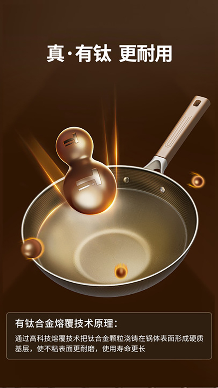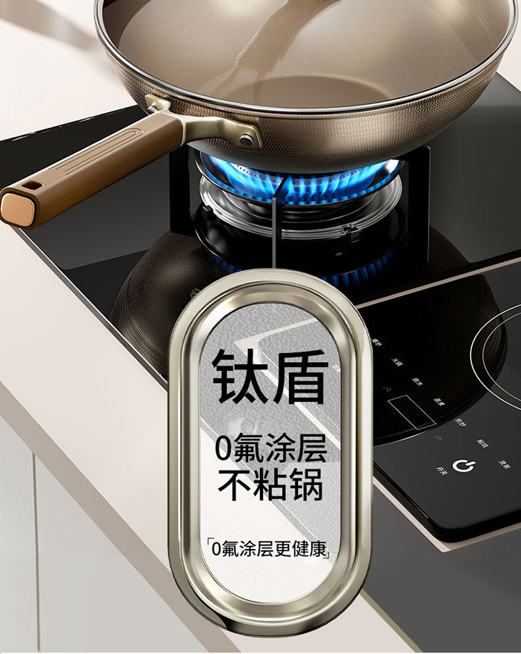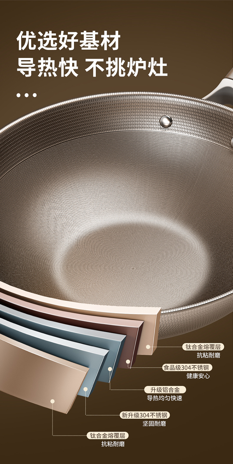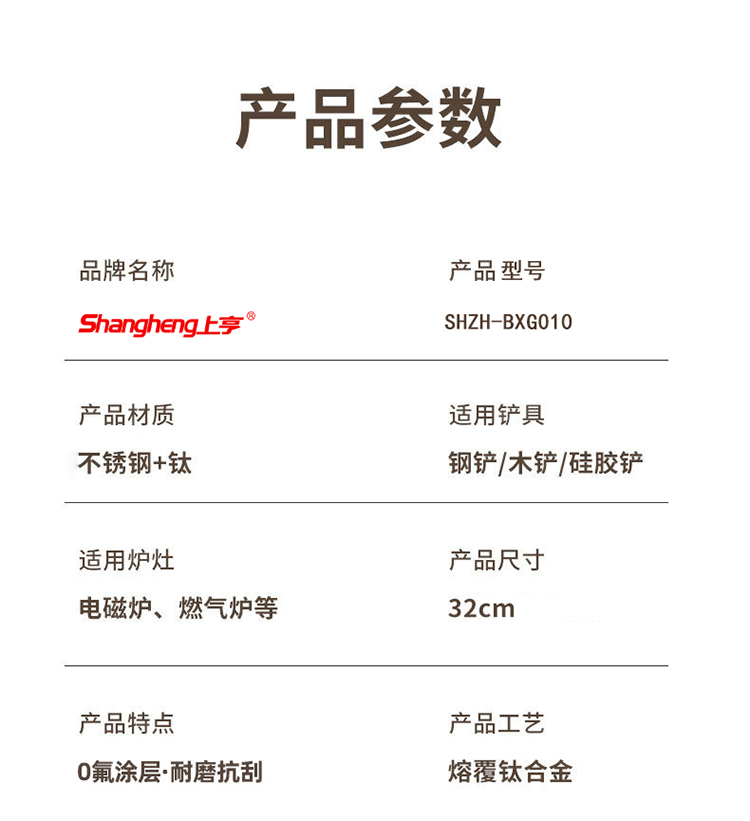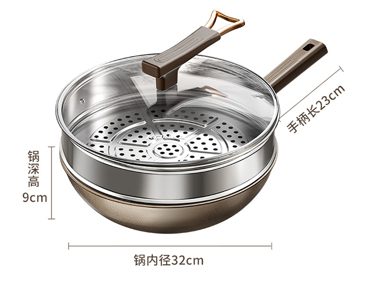 上亨(shangheng) SHZH-BXG010 带盖32cm 双面钛炒锅不锈钢 褐色(单位:个)