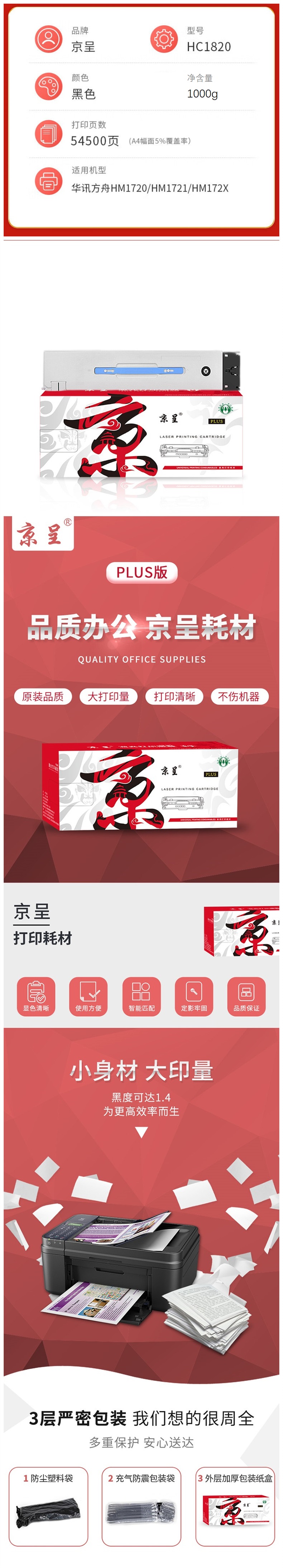 京呈 PLUS HC1820 粉盒 适用华讯方舟HM1720/HM1721/HM172X 计价单位:支 黑色