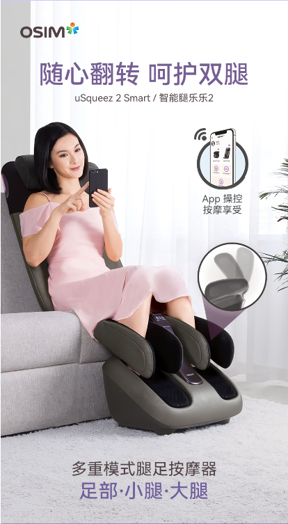 傲胜(OSIM)足疗机腿乐乐 智能足部按摩仪 升级腿部推拿 温热按摩脚机 实用礼物礼品 OS-393S 单位:个 深灰色