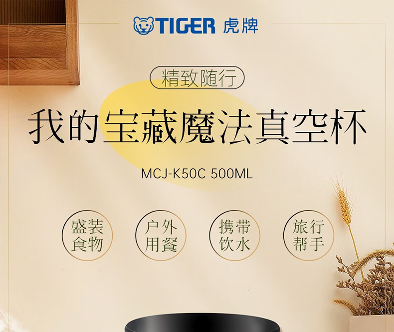 虎牌(TIGER)家居馆焖烧杯大容量真空不锈钢焖烧保温便当盒MCJ-K50C 500ml 单位/只 绿色