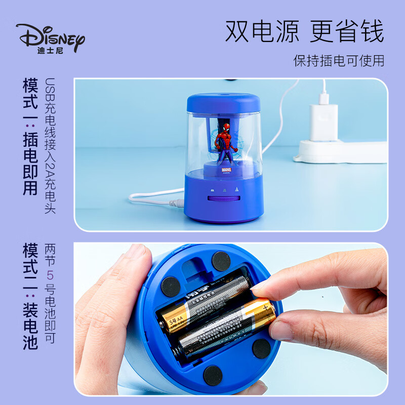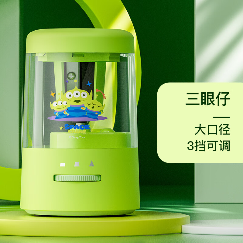 迪士尼(Disney)电动削笔机儿童多功能充电装电池自动卷笔刀学生开学文具削笔器A73058-T2X 三眼仔个 绿色