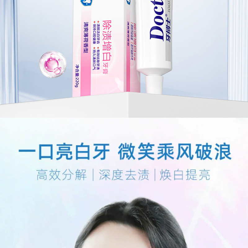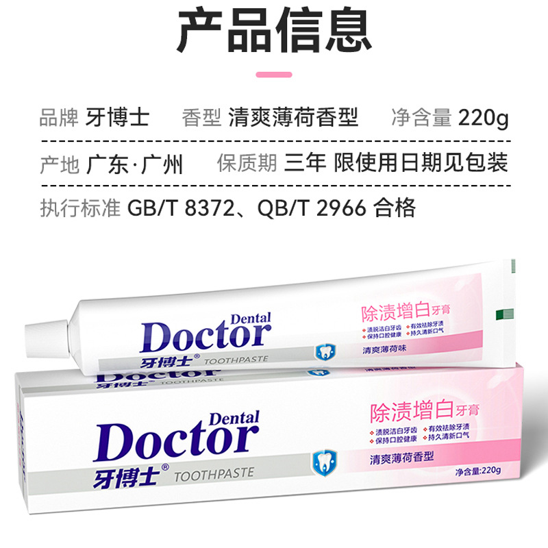 牙博士 除渍增白牙膏220g*4支(单位:套) 粉色