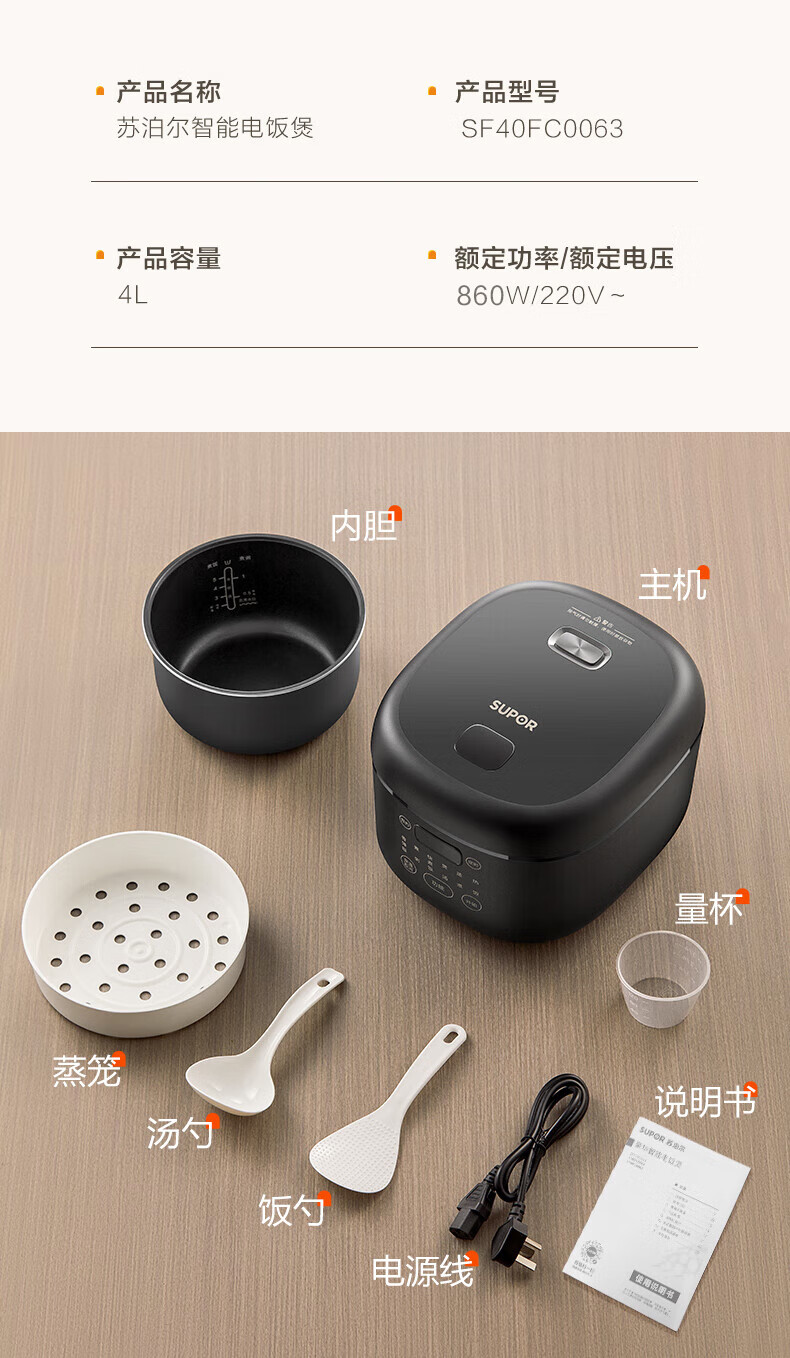 苏泊尔(SUPOR) SF40FC0063 4L 电饭煲 黑色(单位:台)