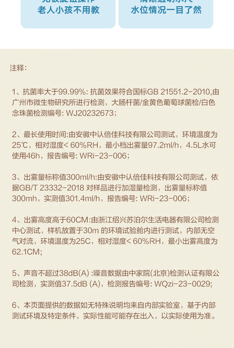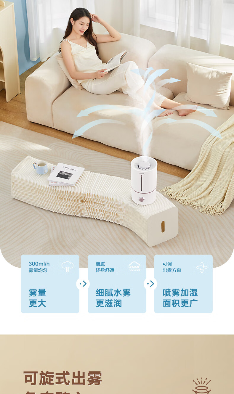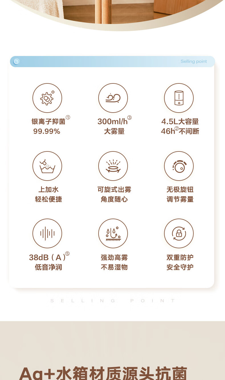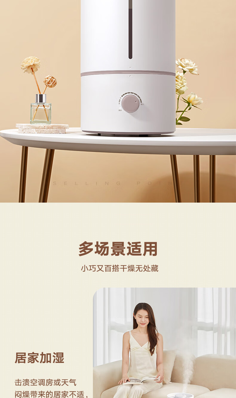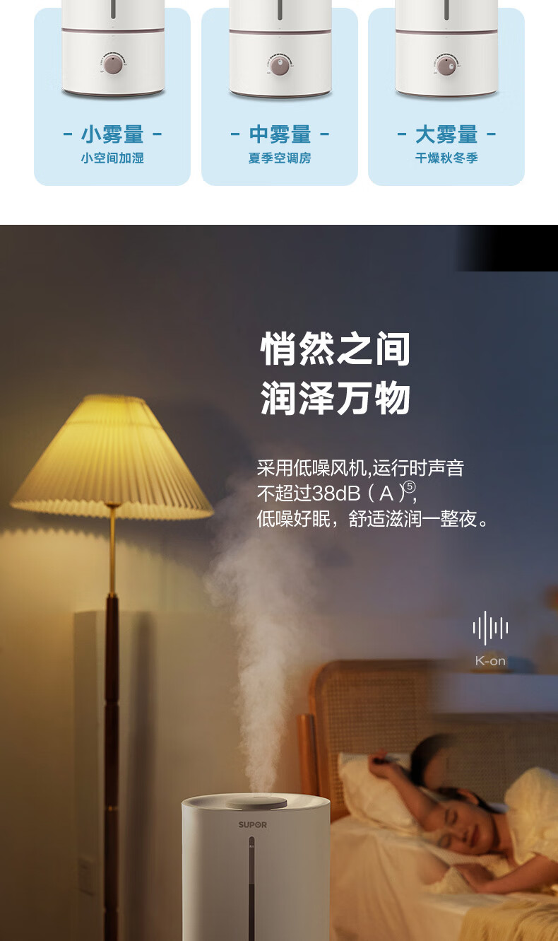 苏泊尔(SUPOR)ZMD安心系列加湿器 银离子材质低音低噪4.5L大容量HHTW-81A-300(单位:台) 本白色