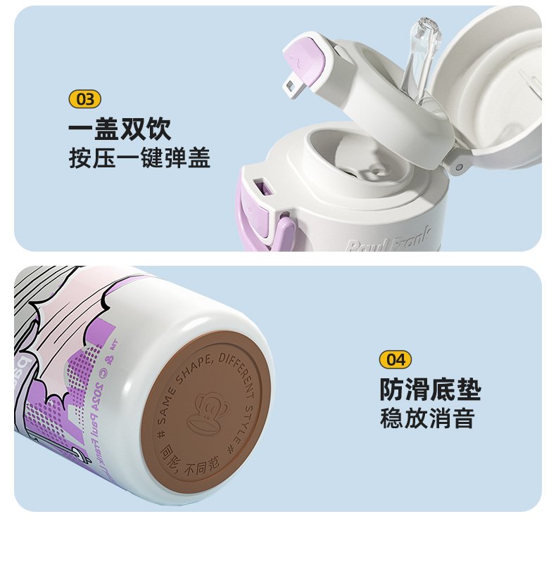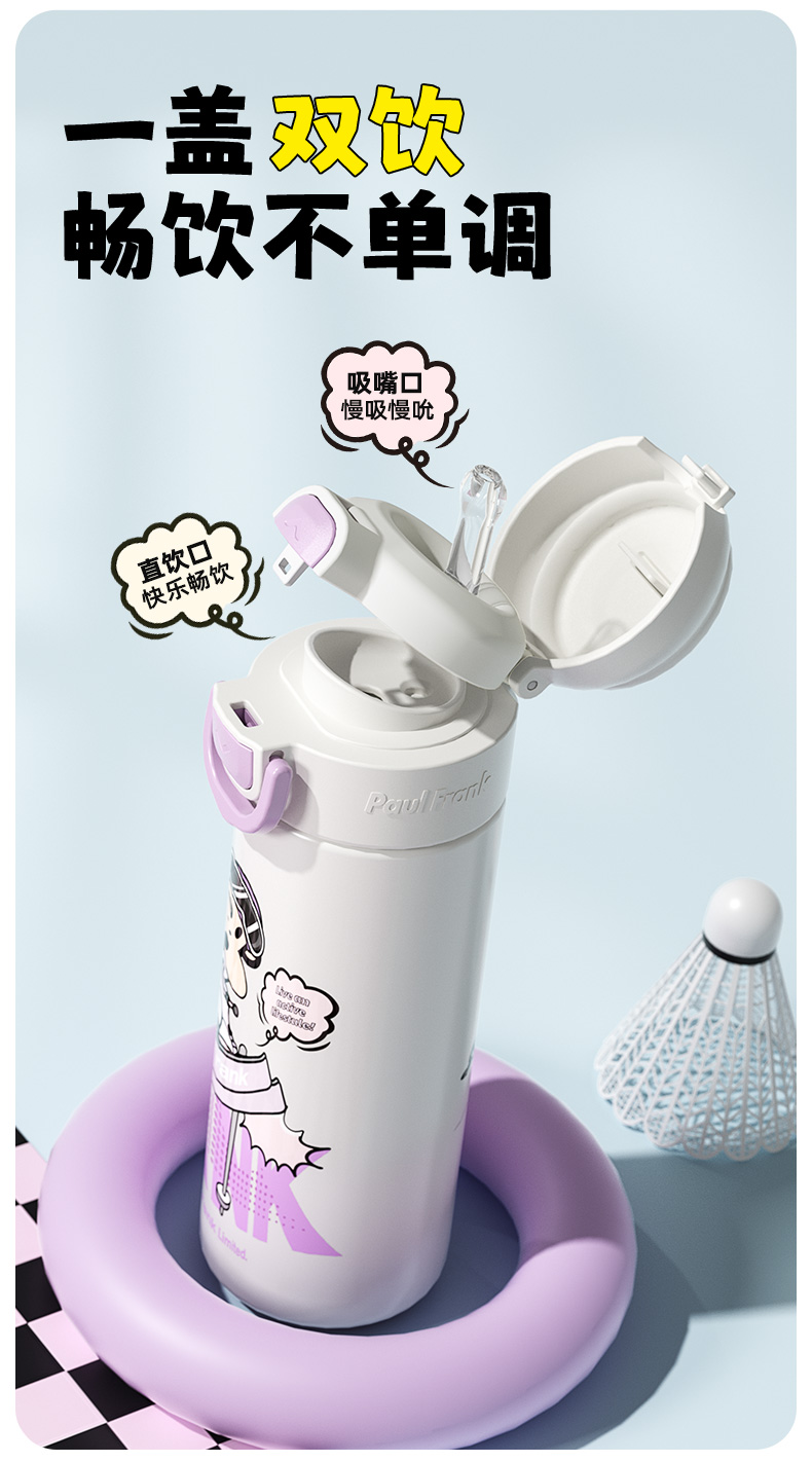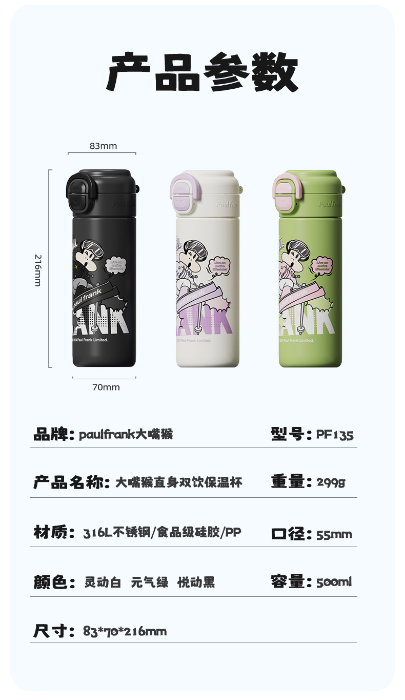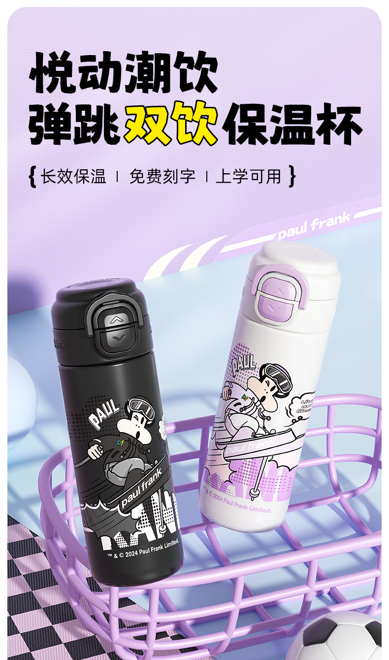 大嘴猴(Paul Frank) PF135B-500 500ml 316L 弹跳双饮保温杯 单位:个 悦动黑