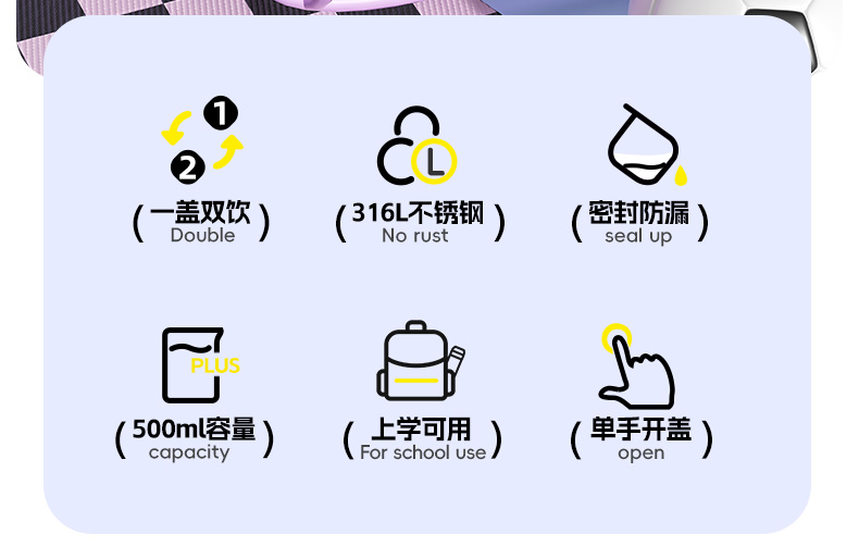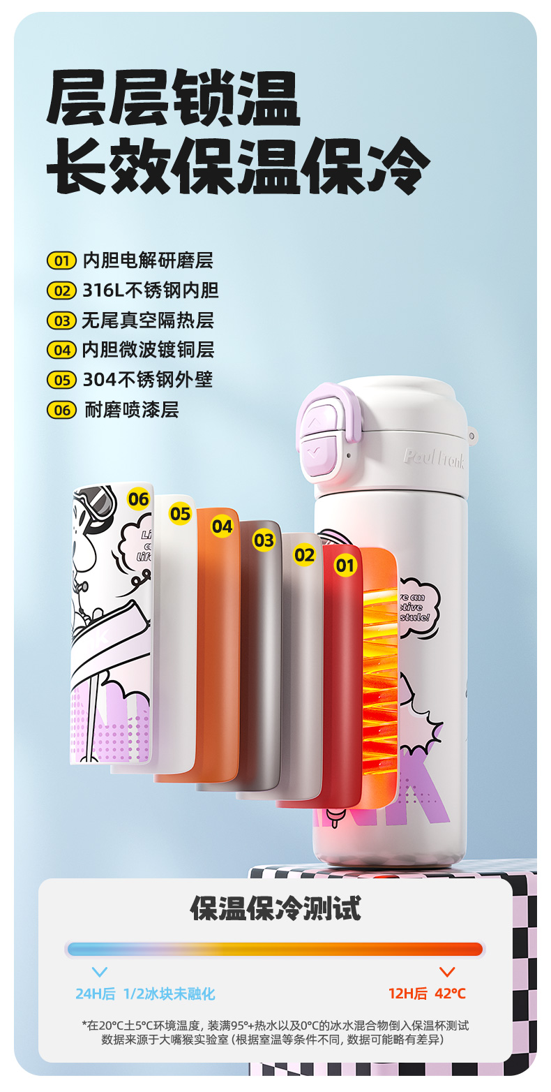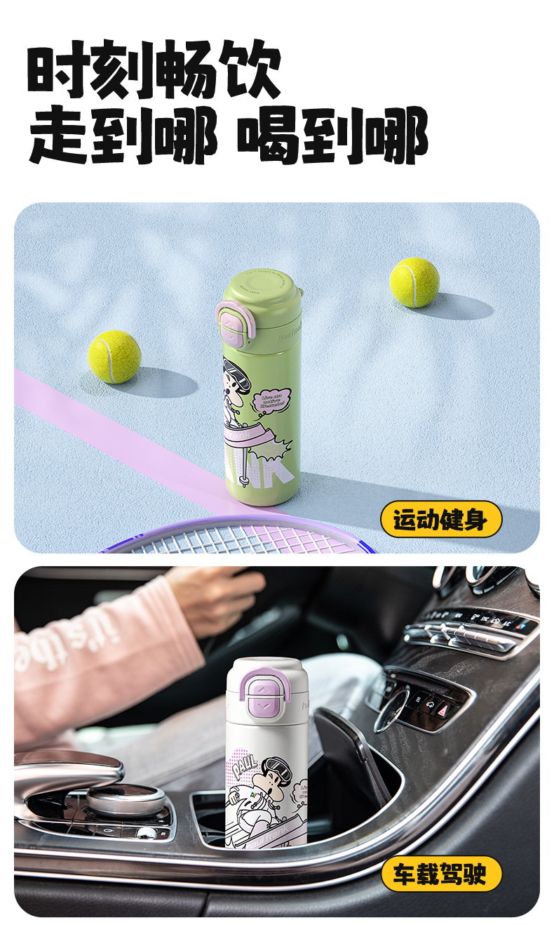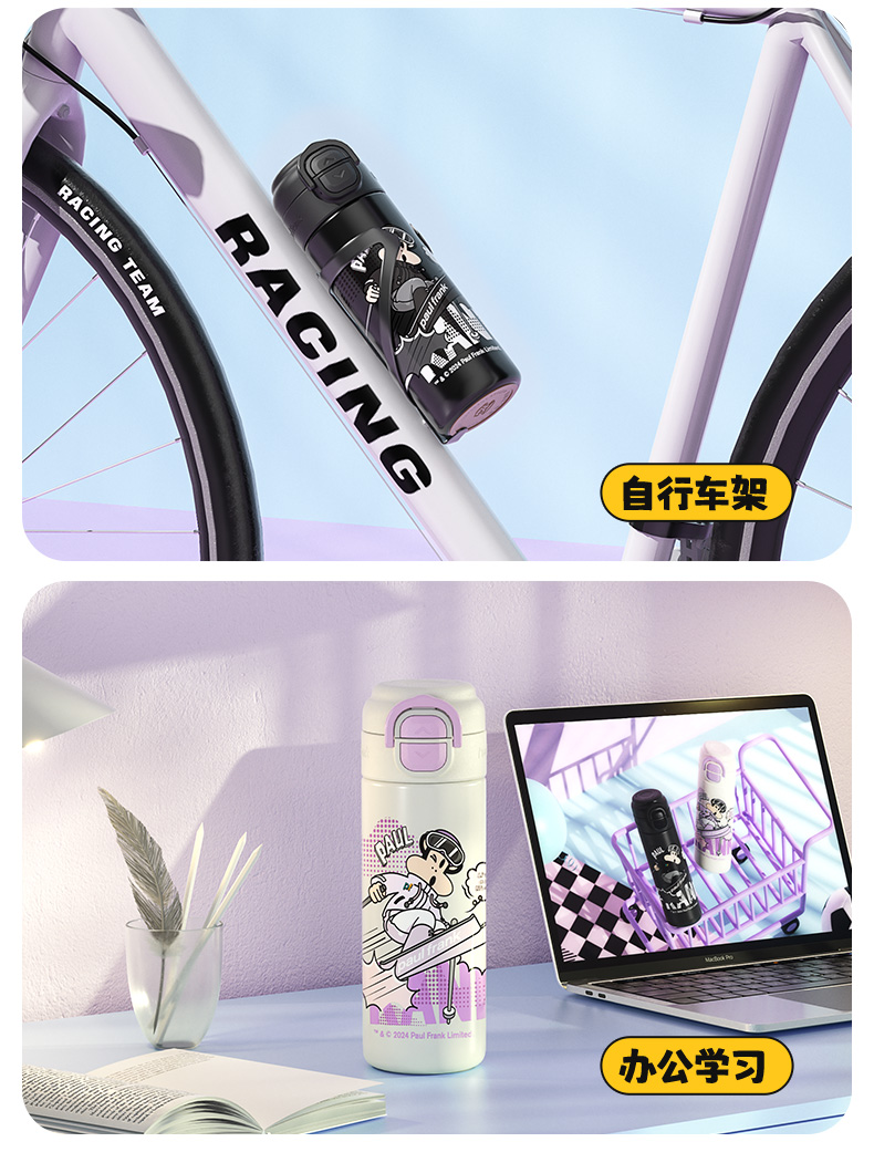 大嘴猴(Paul Frank) PF135B-500 500ml 316L 弹跳双饮保温杯 单位:个 悦动黑