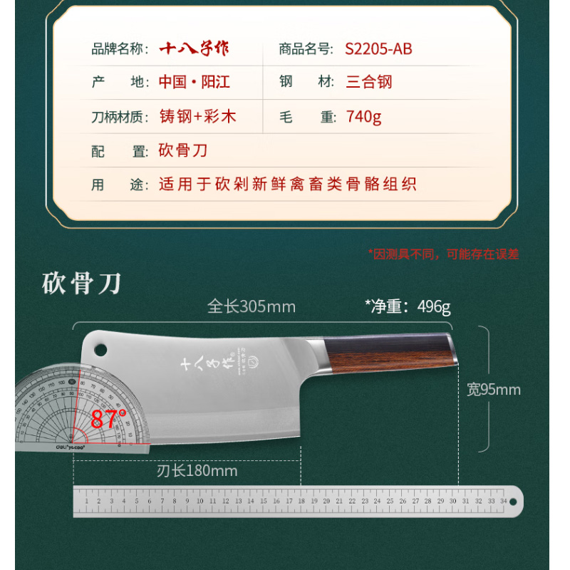 十八子作 S2205-B 相映切片刀(36庄) 740g 高品质1把 浅灰色(单位:把)