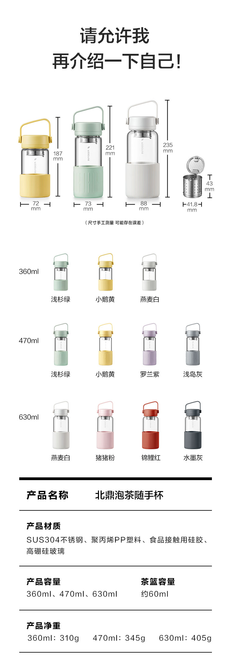 北鼎(Buydeem)泡茶随手杯360ml (单位:个) 浅衫绿
