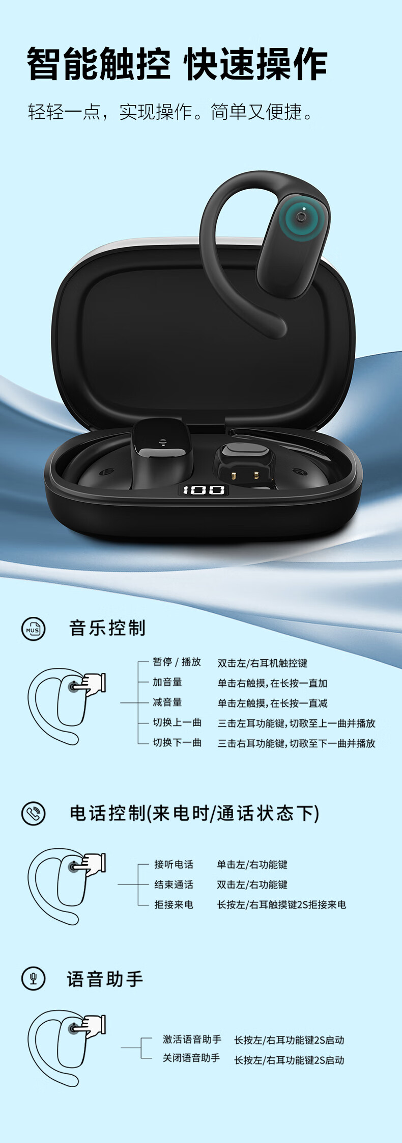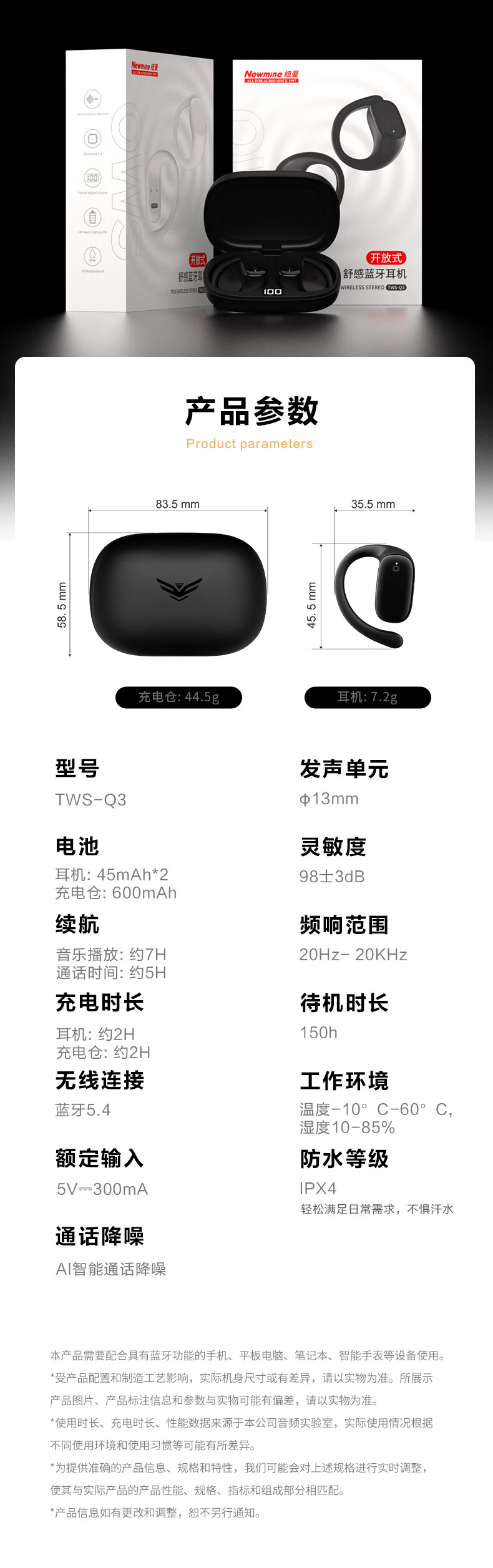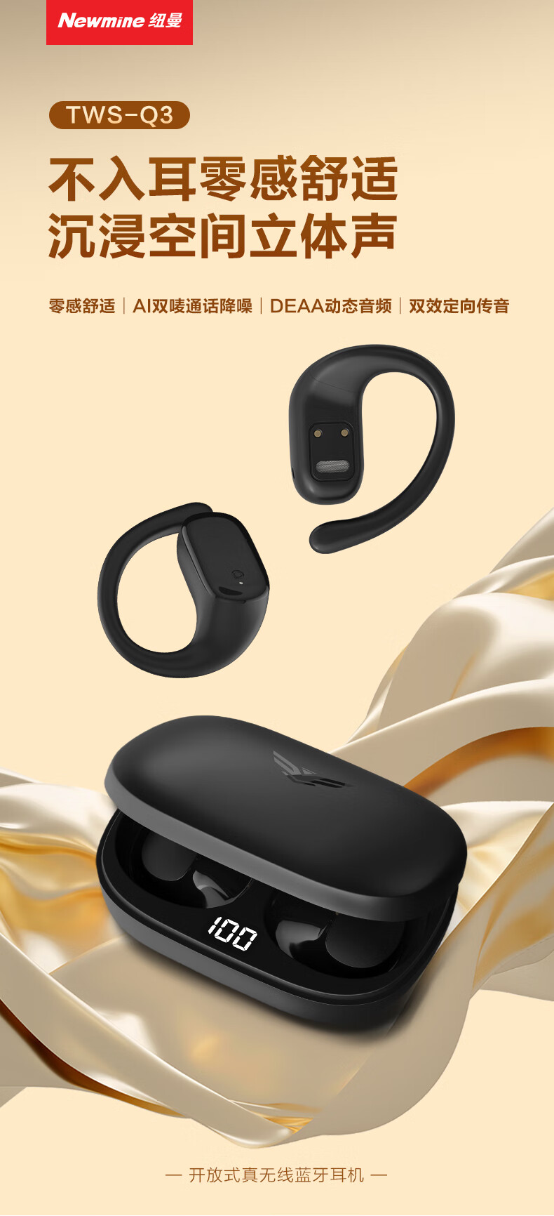 纽曼(Newsmy)挂耳式蓝牙耳机Q3(单位:个) 曜石黑